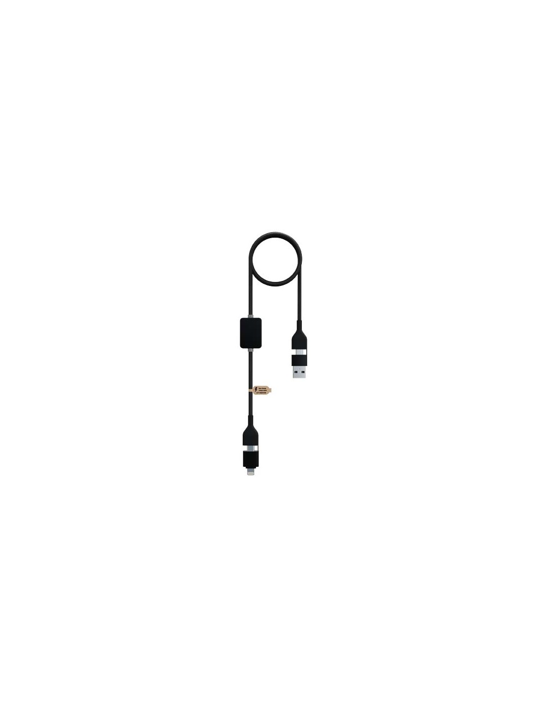 Questo cavo di ricarica superveloce, con una lunghezza di 1 metro e una potenza di 60 W, è dotato di un logo luminoso e di un pulsante per spegnere la luce per un uso più comodo durante la notte, rendendolo ideale per le camere da letto o le auto. Progettato per il trasferimento di dati con Apple CarPlay e Android Auto, presenta uscite di Tipo-C e Lightning oltre a un doppio ingresso USB-A e USB-C per una compatibilità universale, compresi i più recenti modelli MacBook. Il cavo è realizzato in plastica ABS/PET riciclata e alluminio e include una gomma morbida su un'estremità e plastica riciclata satinata sull'altra. Fornito in un sacchetto in TPU riciclabile con supporto in cartone riciclato.