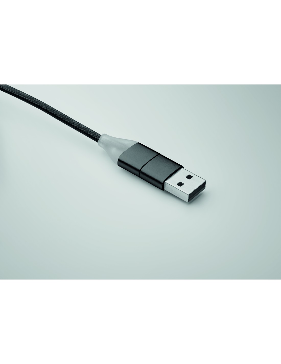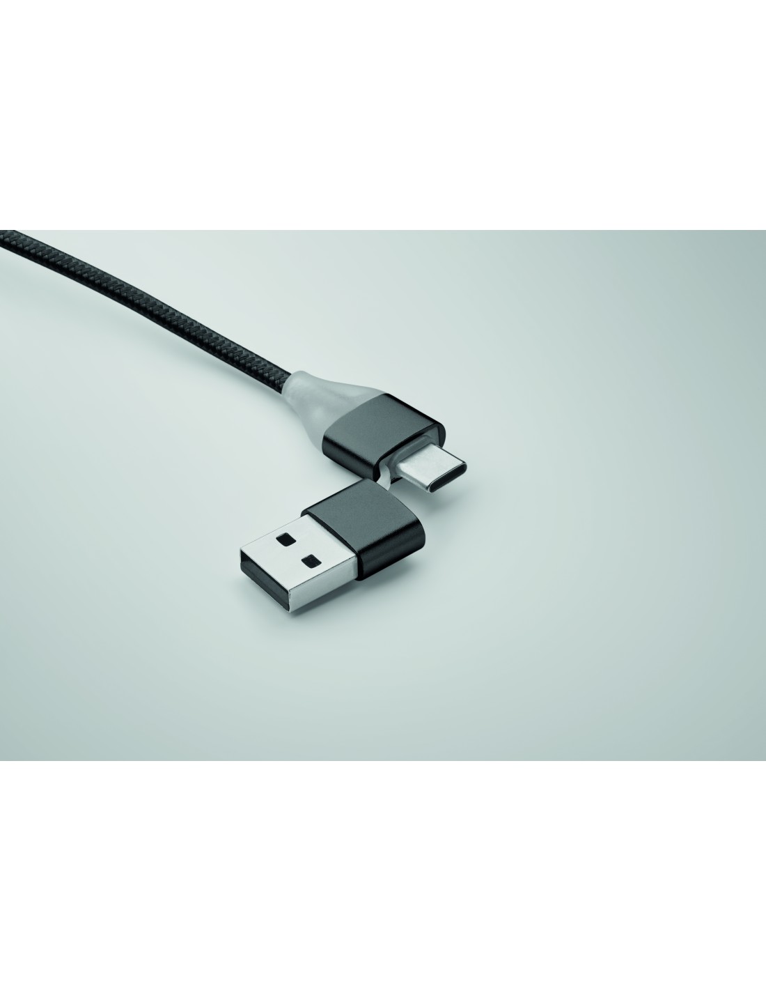 Portachiavi con cavo di ricarica con ingresso: 2-in-1 tipo-C e tipo-A e micro-B (2 in 1 pin) e uscita tipo C.