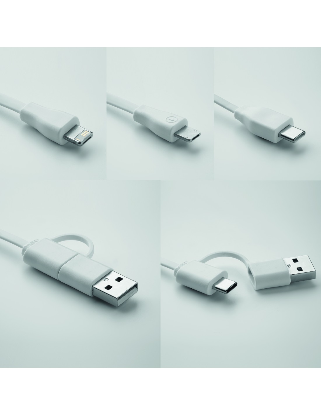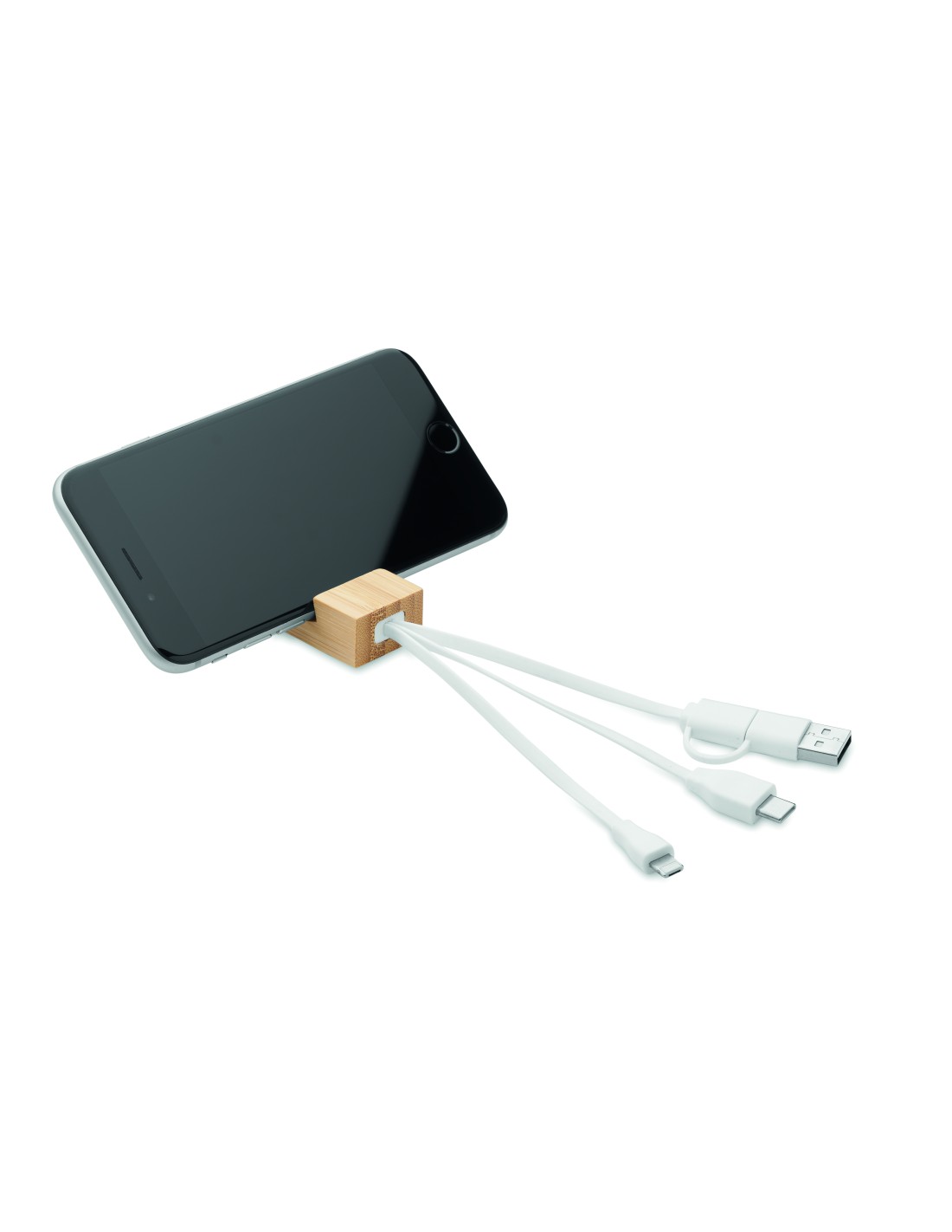 Cavo di ricarica in gomma dalla finitura in bambù con trasferimento dati e doppio logo luminoso. Il cavo è realizzato con materiali sostenibili: plastica ABS riciclata e bottiglie in rPET riciclato. Si può utilizzare con Apple CarPlay e Android Auto per le app auto. Grazie alla sua doppia uscita...