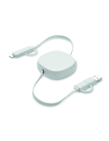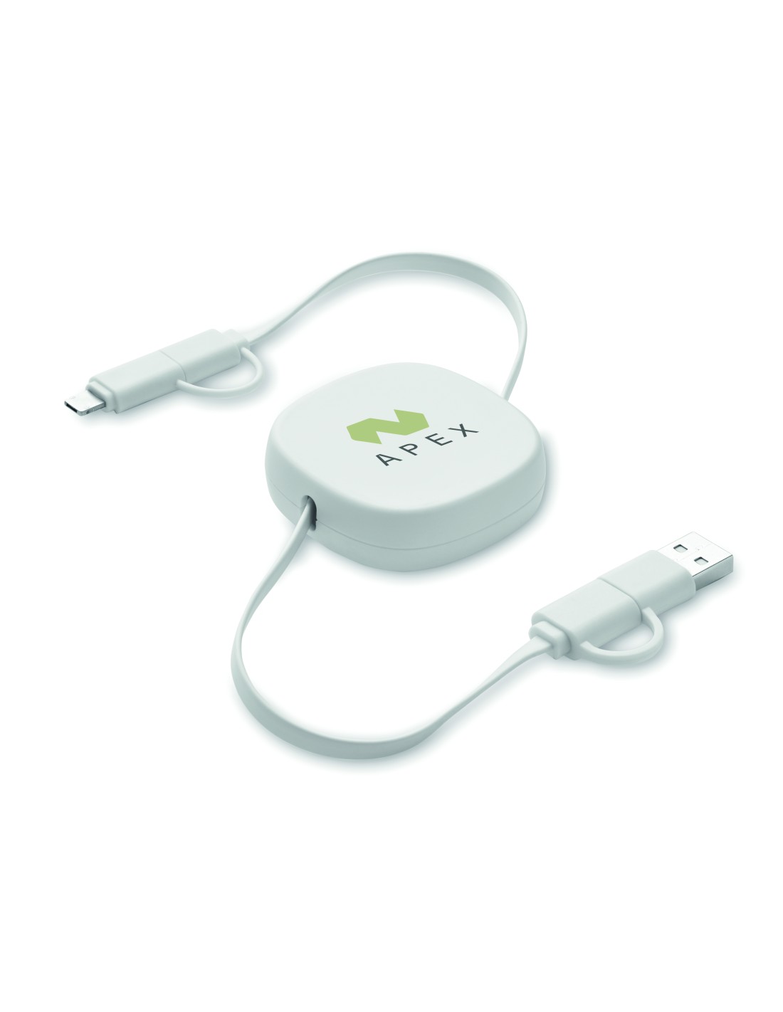 Cavo di ricarica con logo luminoso, finitura in gomma e dotato di tre connettori (tipo C, Android, iPhone). È possibile caricare fino a tre dispositivi contemporaneamente. Lunghezza dei cavi (spine incluse): 10 cm. Lunghezza totale del cavo: 1 metro. Cavo in plastica PET riciclata ed'imballaggio...