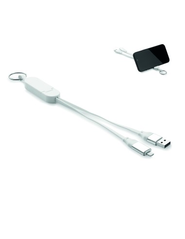 Cavo di ricarica con finitura in gomma, metallo e logo luminoso. Dotato di tre connettori (Tipo-C, Android, iPhone) e uscita USB-A e USB-C. È possibile caricare fino a tre dispositivi contemporaneamente. Lunghezza dei cavi (spine incluse): 10 cm. Lunghezza totale del cavo: 1 metro. Il cavo è...