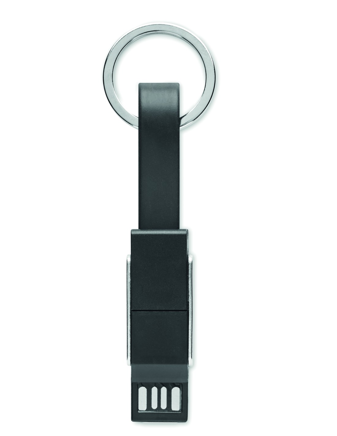 Portachiavi con cavo di ricarica 4-in-1. Ingresso/uscita: Tipo-C x2, Tipo-A, Micro USB.