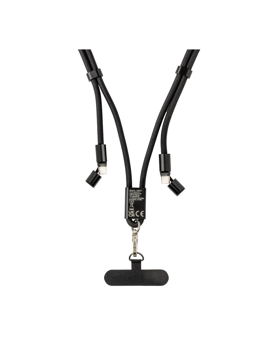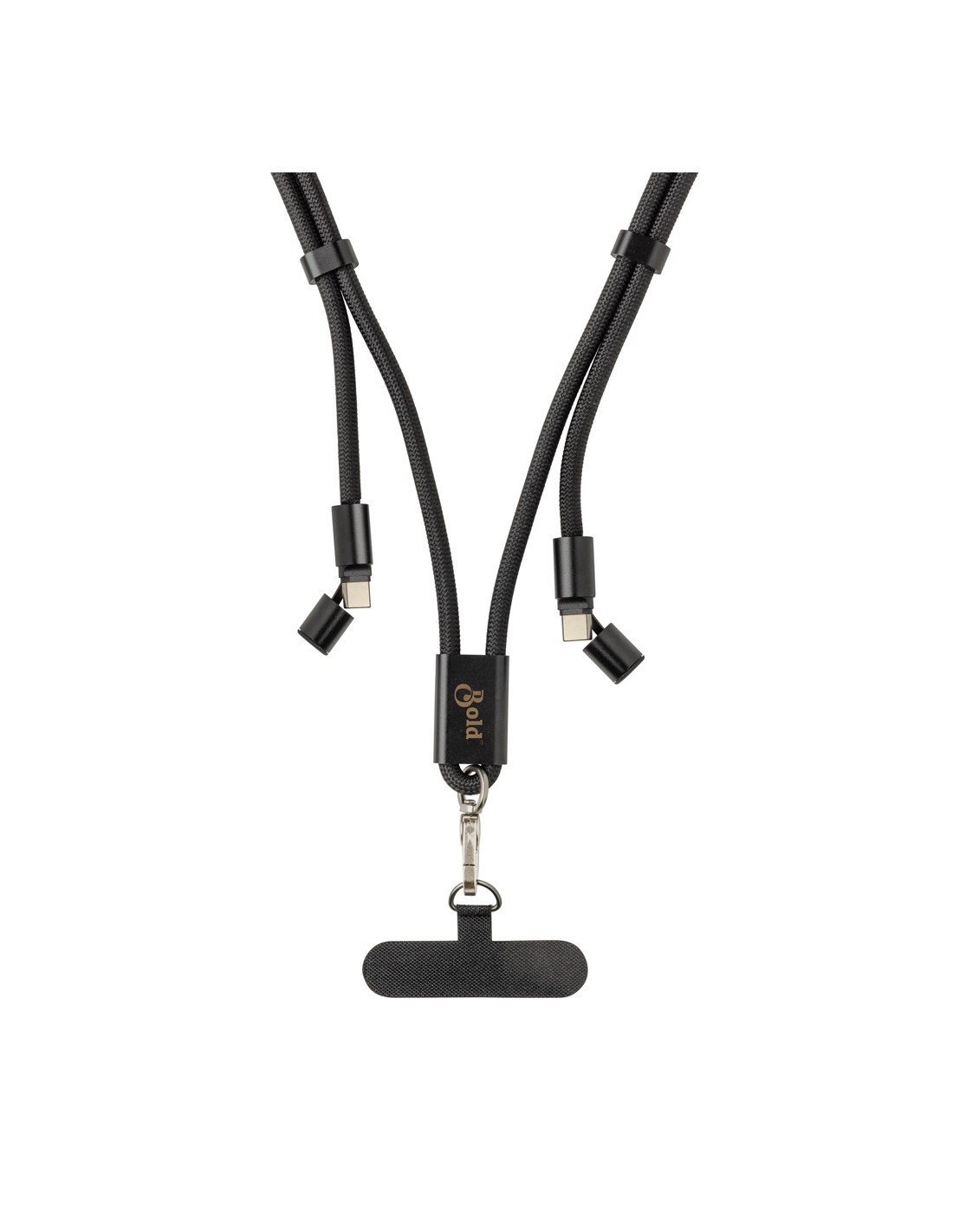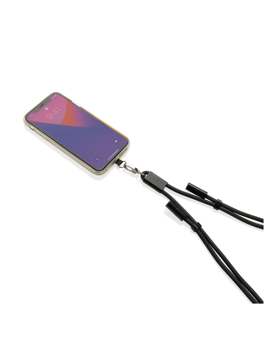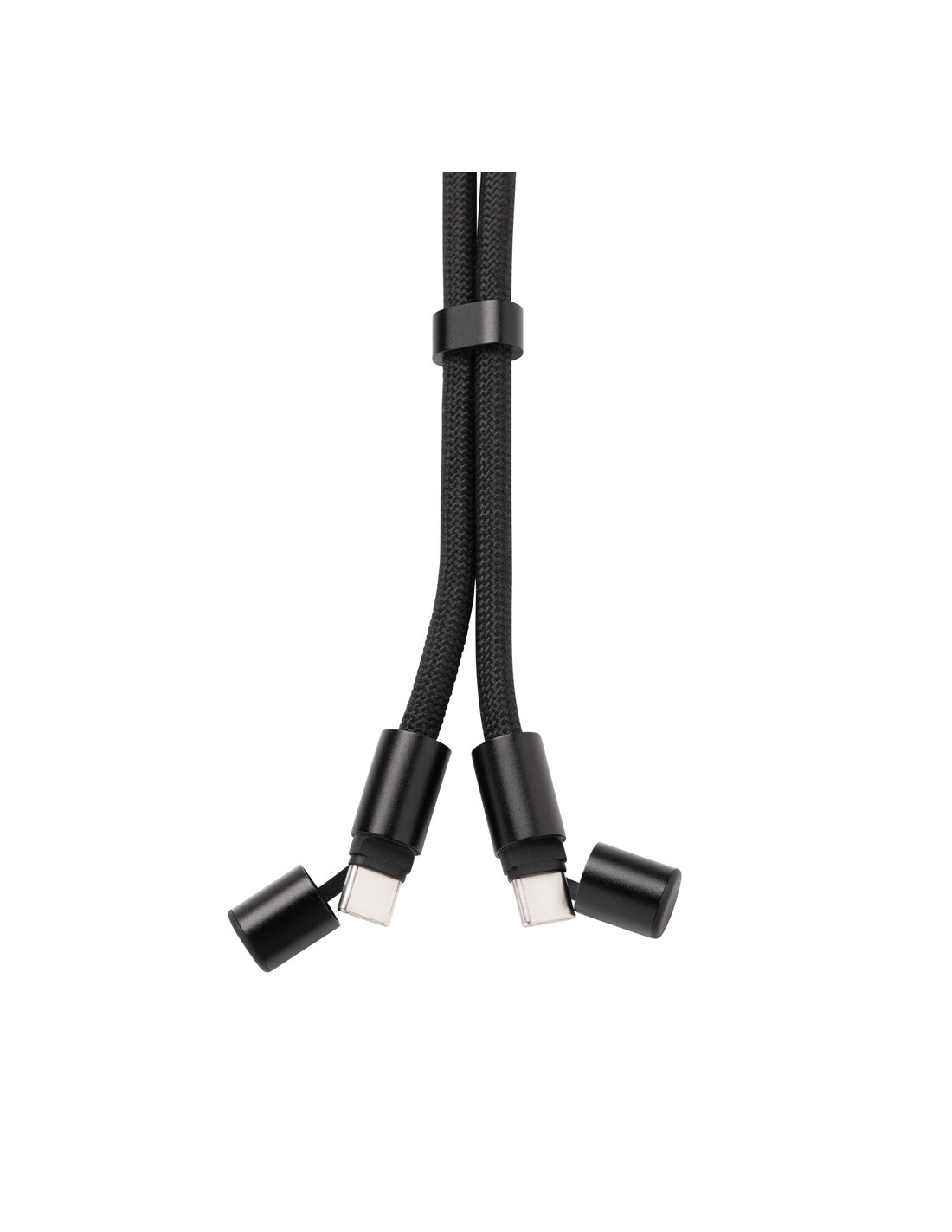 Cavo di ricarica con finitura in gomma, metallo e logo luminoso. Dotato di tre connettori (Tipo-C, Android, iPhone) e uscita USB-A e USB-C. È possibile caricare fino a tre dispositivi contemporaneamente. Lunghezza dei cavi (spine incluse): 10 cm. Lunghezza totale del cavo: 1 metro. Il cavo è...