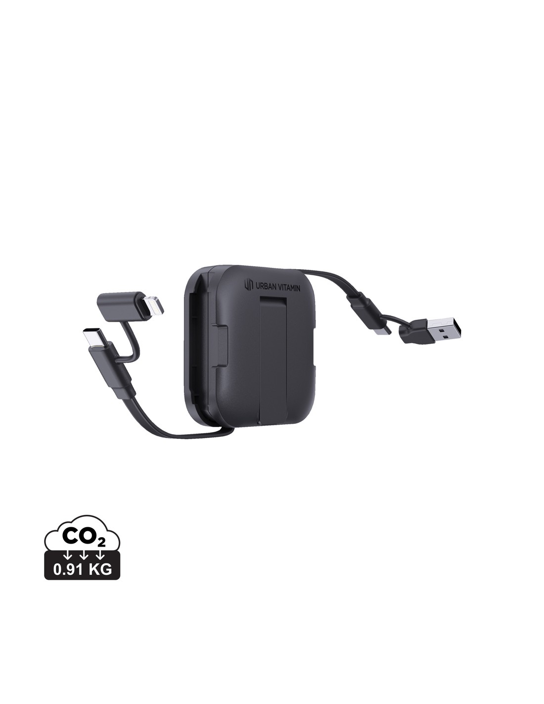 Cavo di ricarica portachiavi 4 in 1 in alluminio riciclato con un'uscita massima di 10 W. Grazie ai connettori di ingresso di Tipo-C e USB-A combinati con i connettori di uscita combinata di Tipo-C e Lightning/Micro USB (supportano i dispositivi Apple iOS e Android), è possibile caricare la...