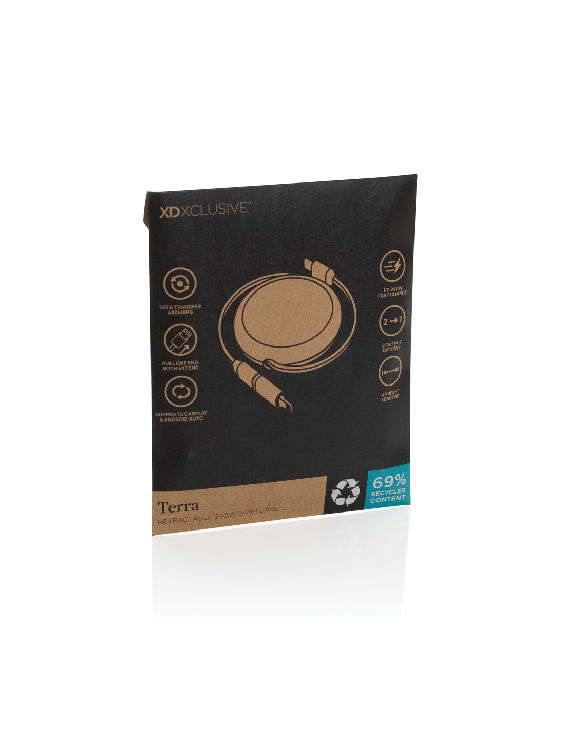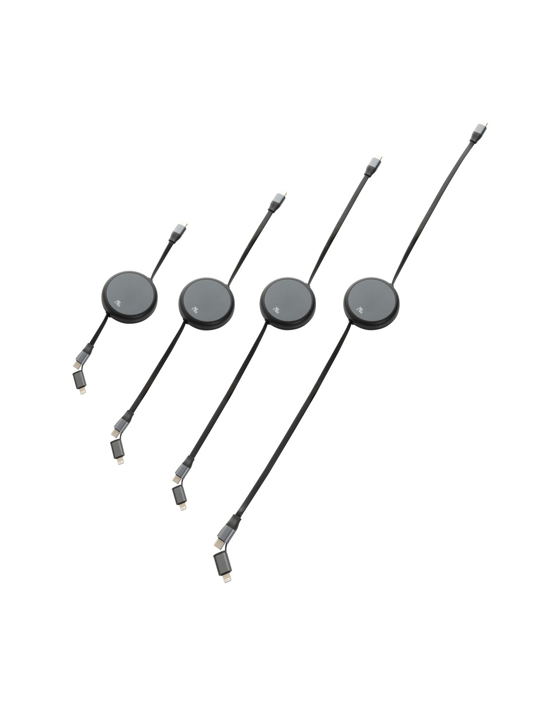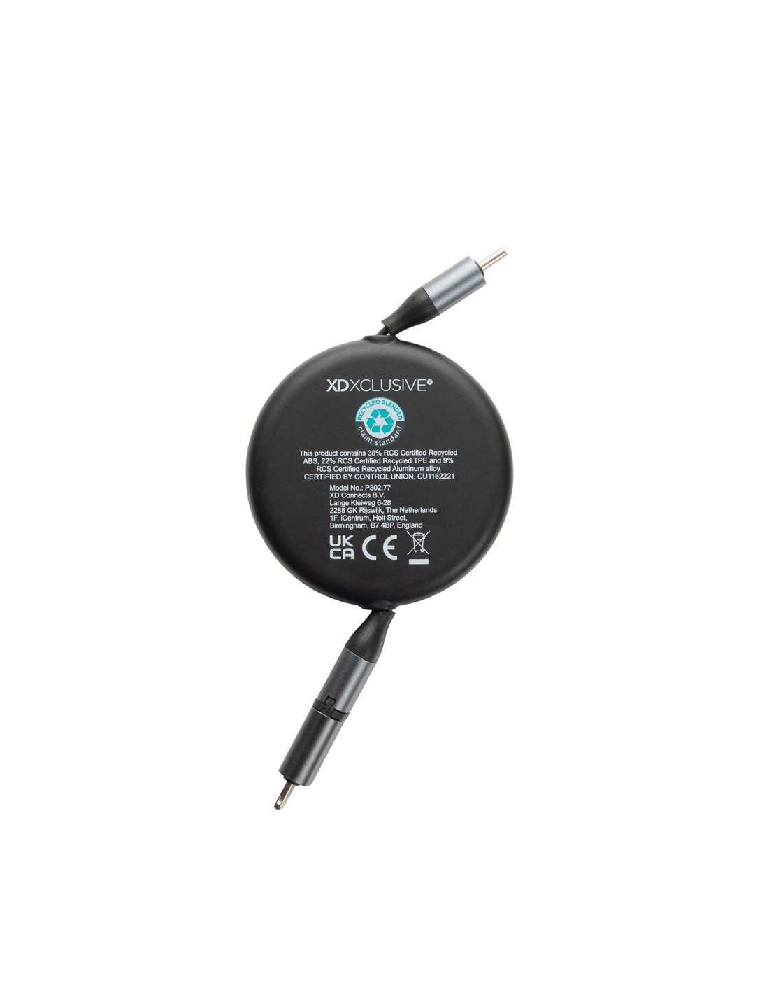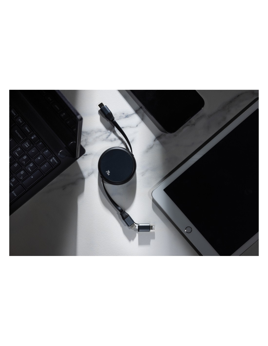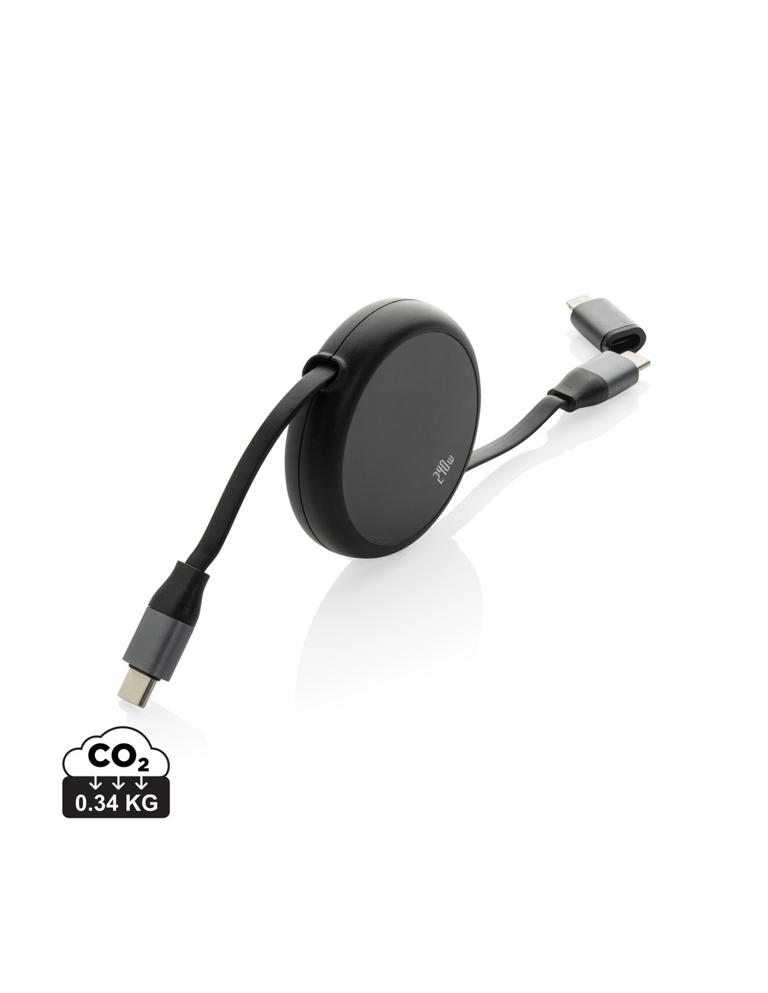 Cavo di ricarica magnetico ultraveloce 4 in 1 in PET riciclato da 100 W per ricaricare smartphone, tablet e computer portatili. Il doppio ingresso USB-A + USB-C rende il cavo compatibile al 100% con gli ultimi modelli di computer. Uscita: Tipo C e Lightning. Compatibile con CarPlay. Fornito con...