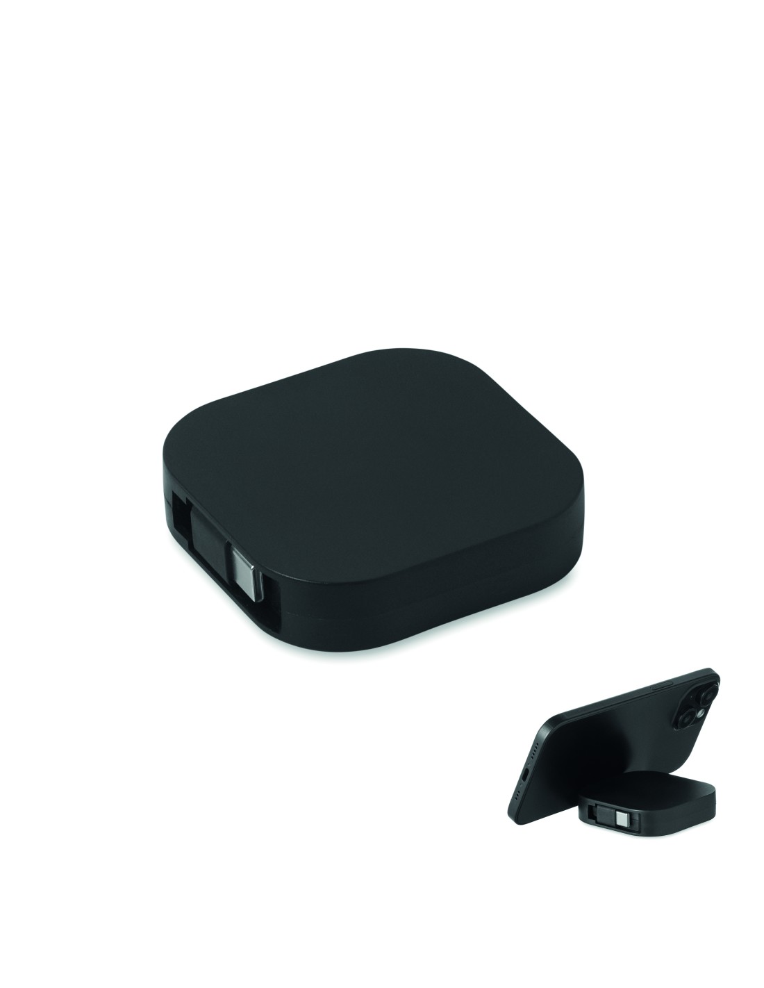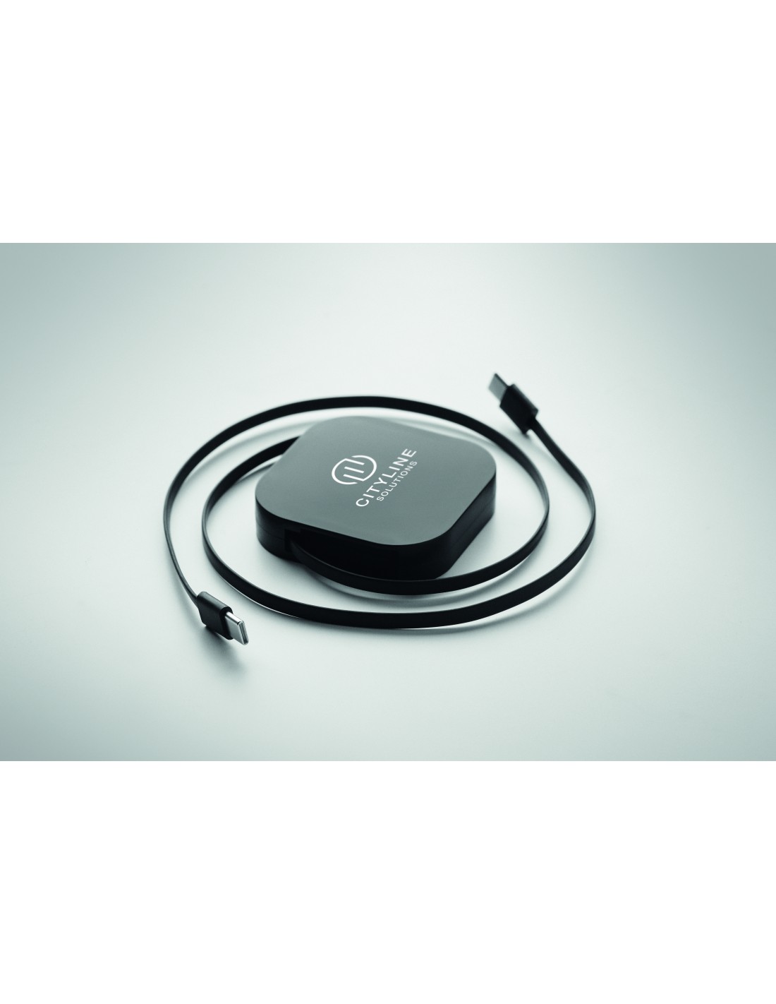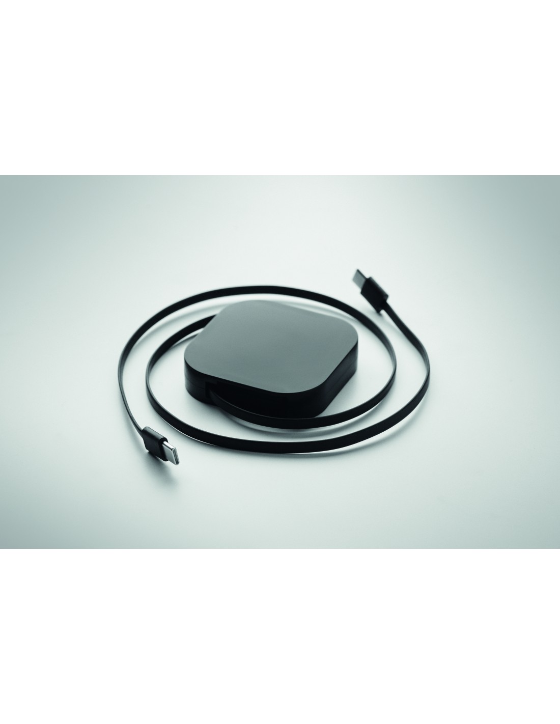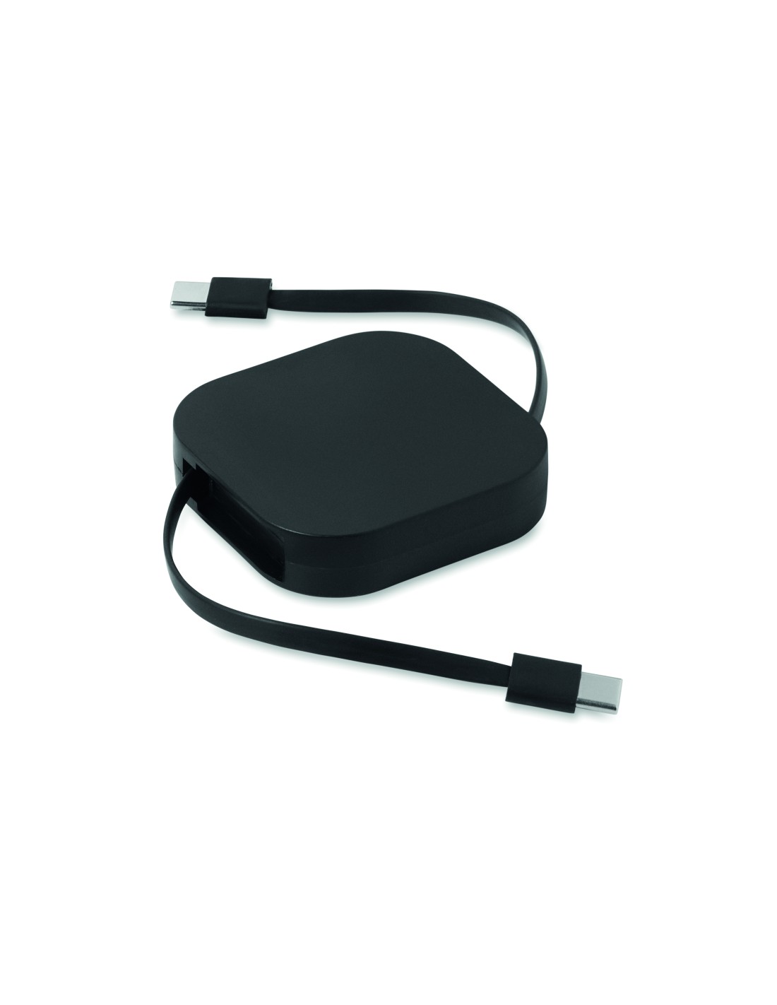 Cavo di ricarica e dati retrattile da 100 W. Supporto per il telefono. Cavo in PVC con custodia in ABS per alimentazione e trasferimento dati (480Mbps). Connessione da Tipo-C a Tipo-C.