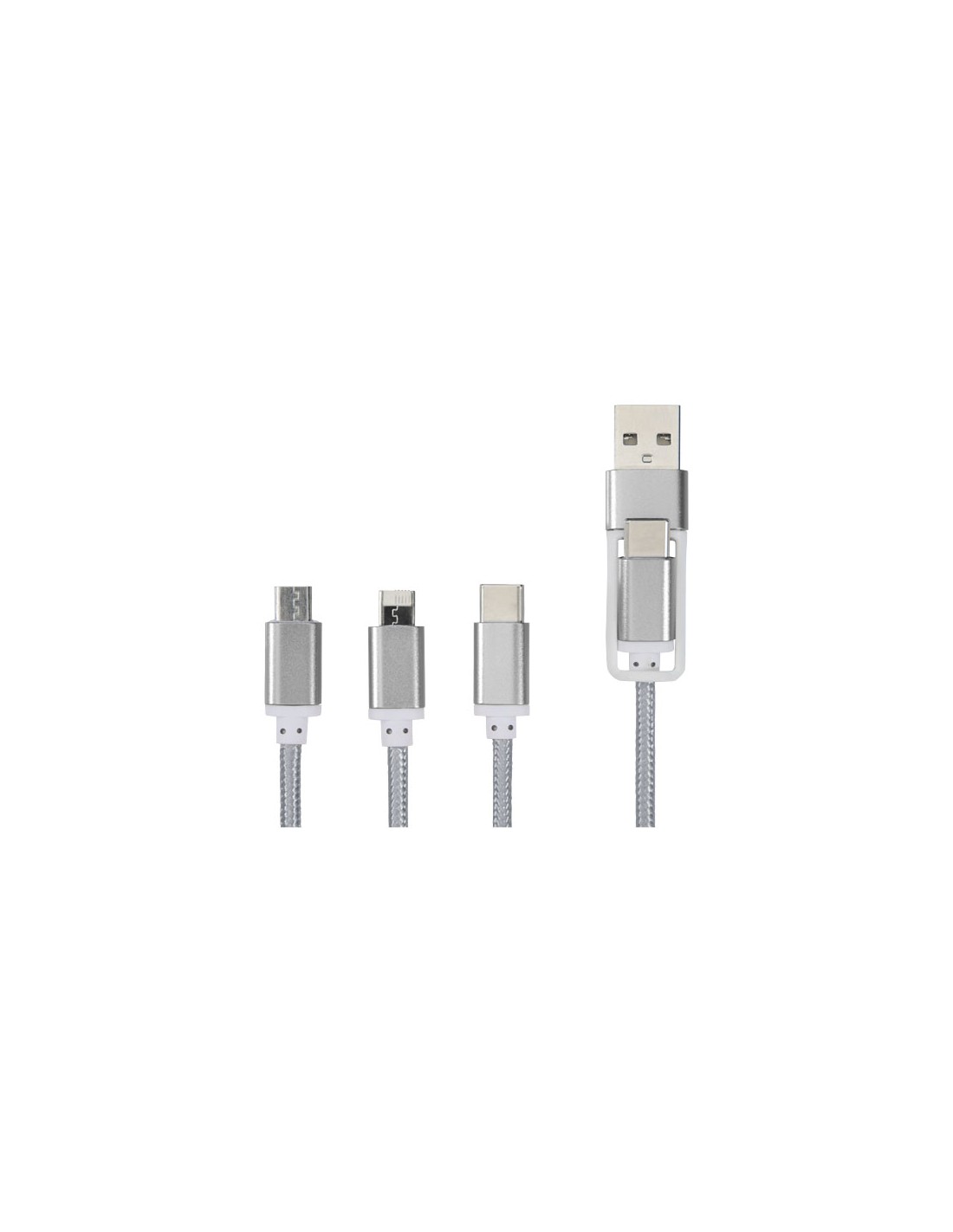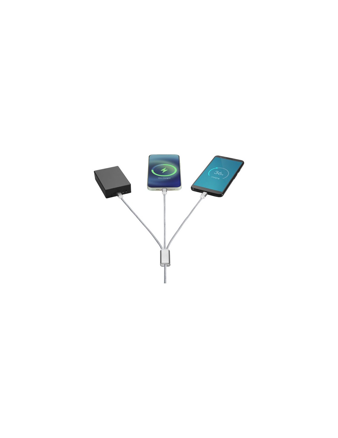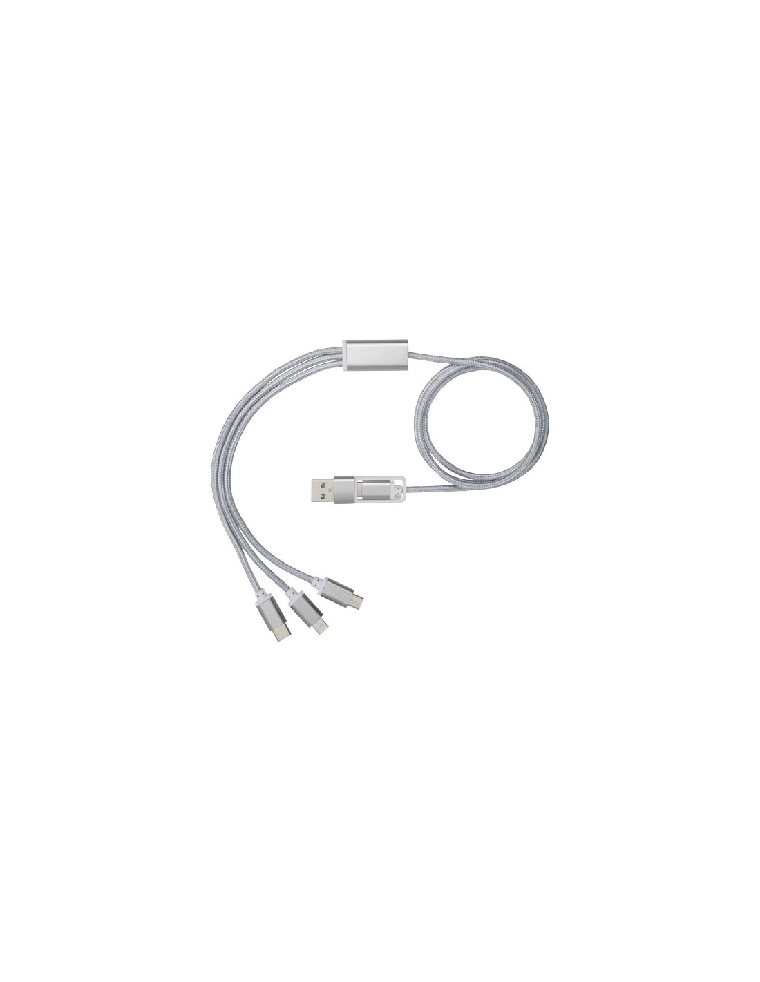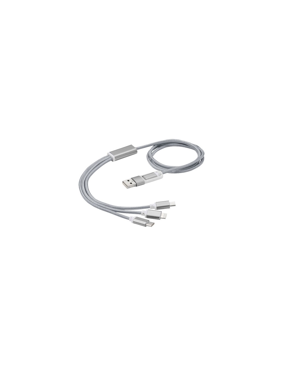 Portachiavi con cavo di ricarica 4-in-1. Ingresso/uscita: Tipo-C x2, Tipo-A, Micro USB.
