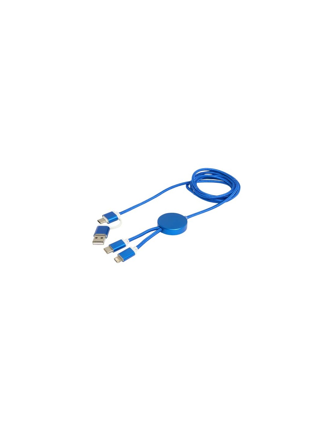Il cavo Alasia 5-in-1 per la sincronizzazione dei dati e la ricarica rapida da 27 W è realizzato in alluminio e plastica riciclati, elegante e resistente. Il cavo è caratterizzato da connettori di ingresso USB-A e di Tipo-C abbinati a un connettore di uscita combinata di Tipo-C e Lightning/Micro USB. La connessione da USB-A a USB-C fornisce una potenza massima di 27 W, mentre tutte le altre opzioni di connessione offrono una potenza massima di 15 W. Compatibile sia con CarPlay che con Android Auto. Sia a casa, in ufficio o durante gli spostamenti, il cavo Alasia offre prestazioni e stile in un unico pacchetto compatto. Lunghezza del cavo: 150 cm.