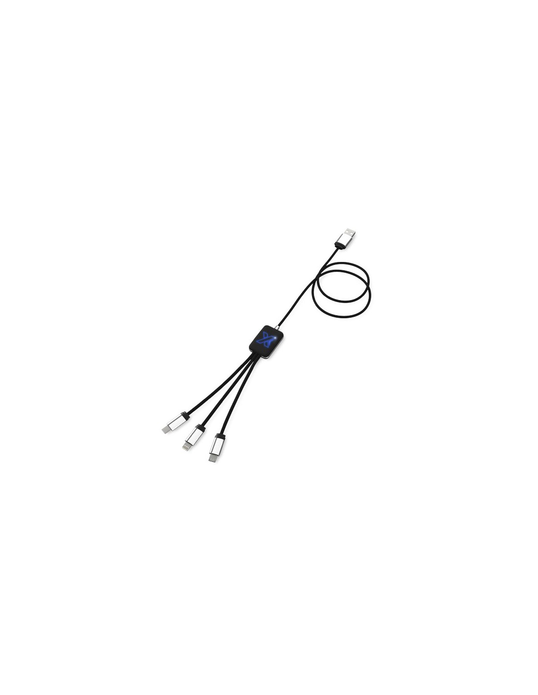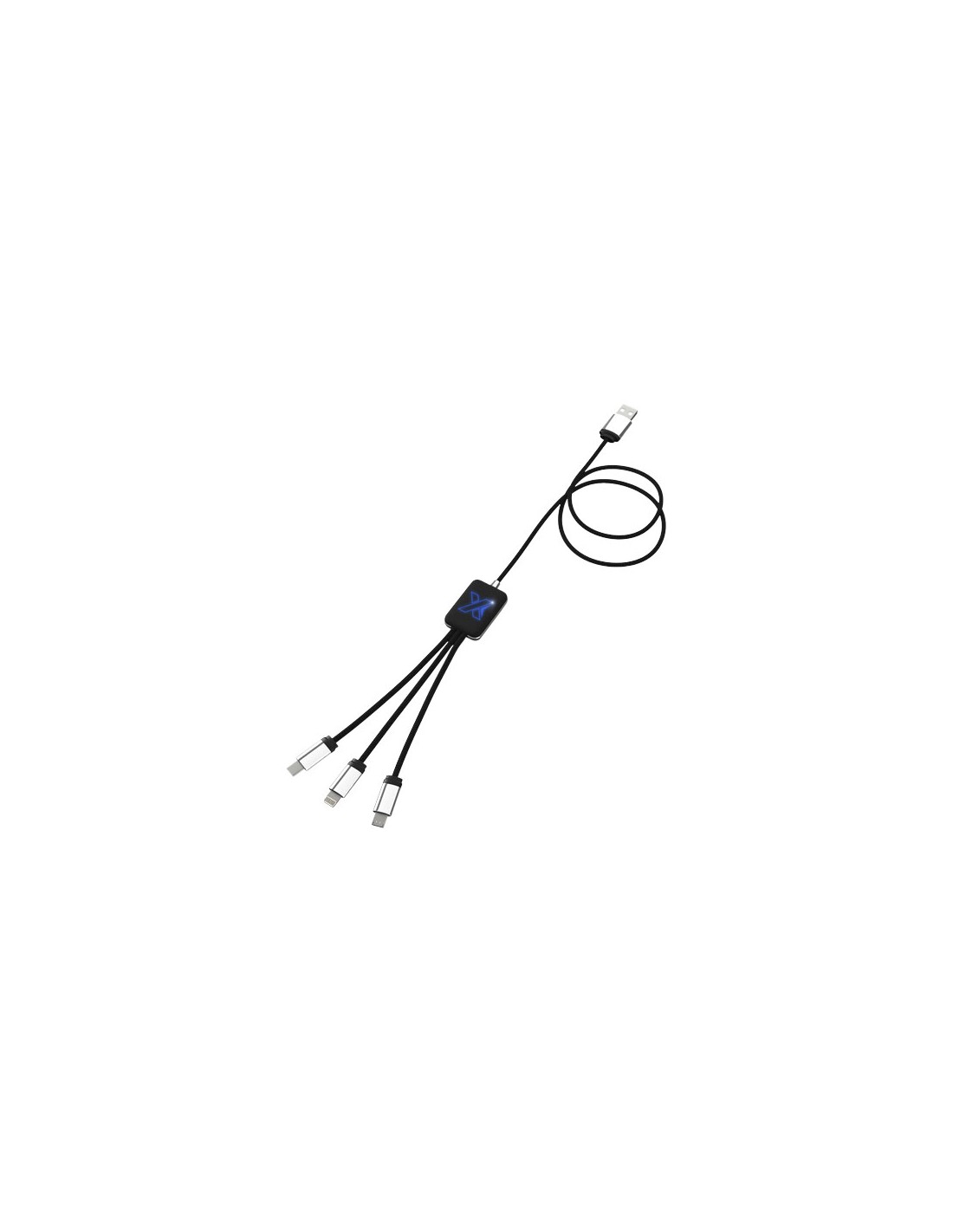 Cavo USB dati e per ricarica con 4 connettori: adattatore USB, due adattatori micro USB e un adattatore tipo-C.