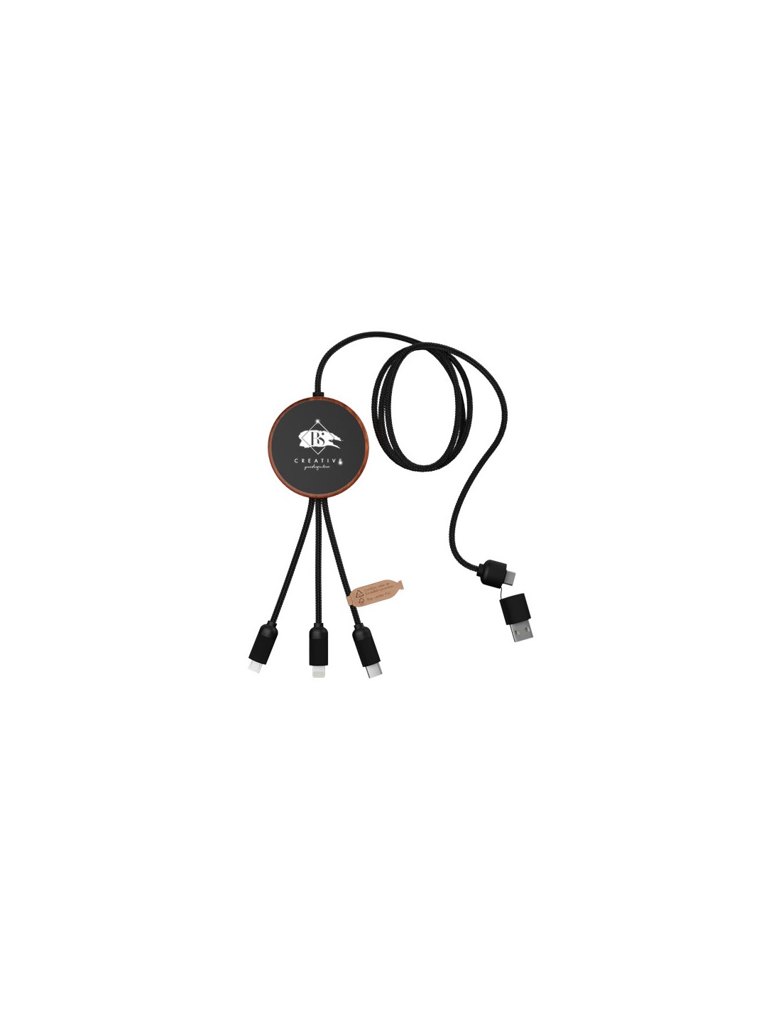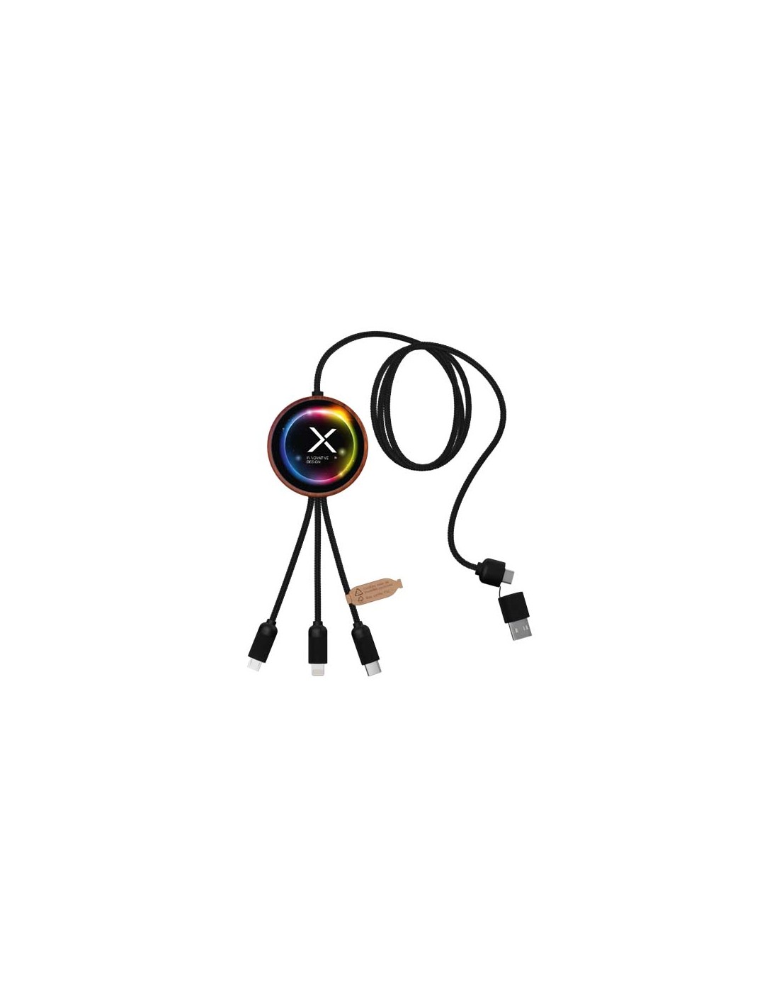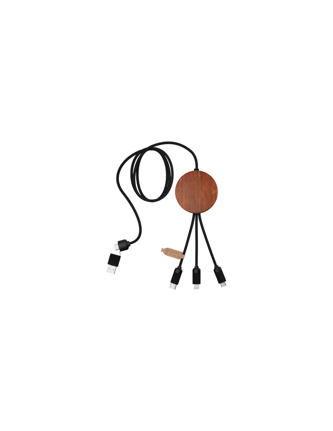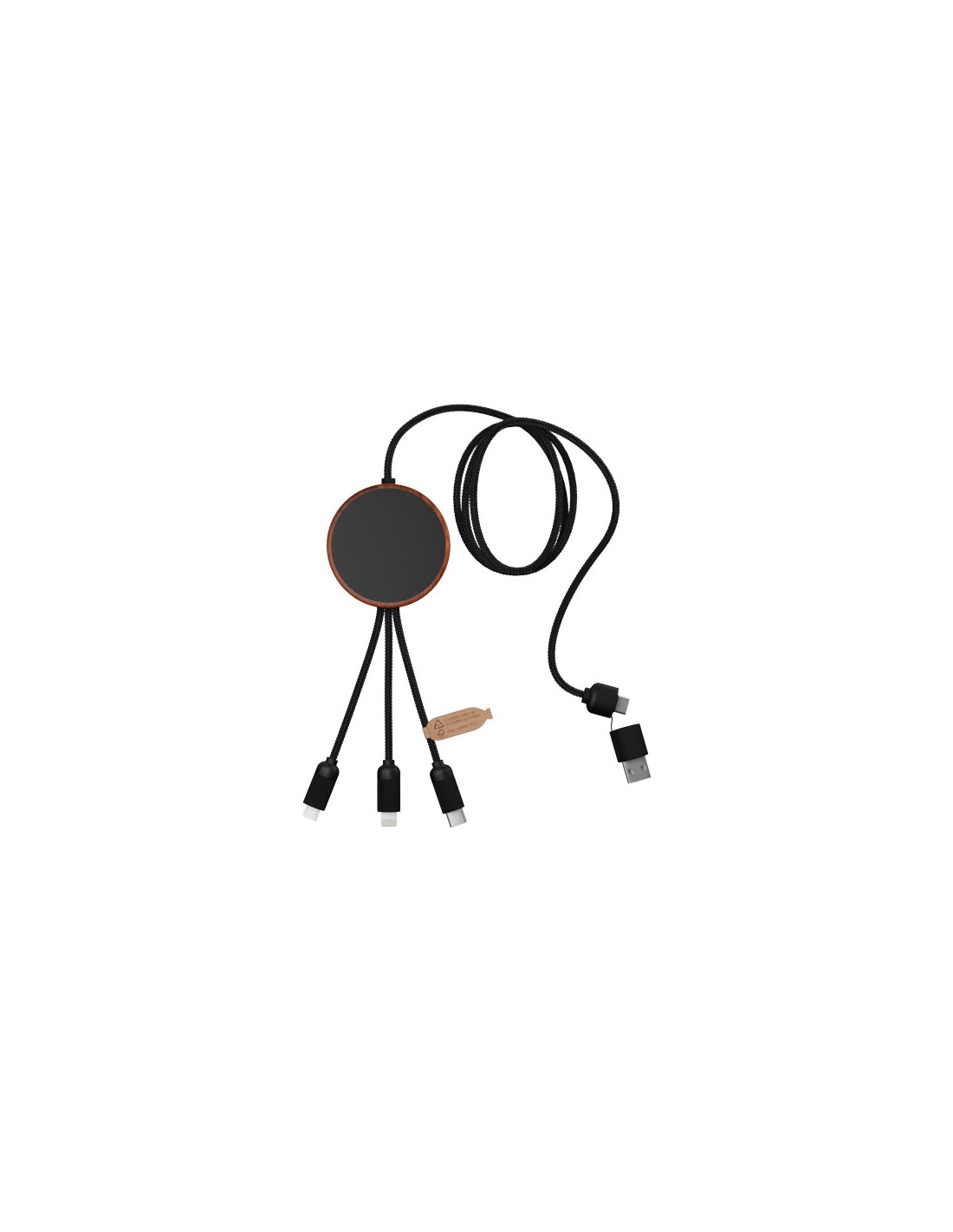 Il cavo di ricarica in bambù 6 in 1 con portachiavi Reel è un esempio di come la sostenibilità incontra lo stile. Con una lunghezza di 12 cm, questo cavo TPE compatto e retrattile offre una potenza di ricarica di 2 A senza ingombri. Ingressi: USB A e Type-C. Uscite: Type-C, micro USB, micro USB 2...