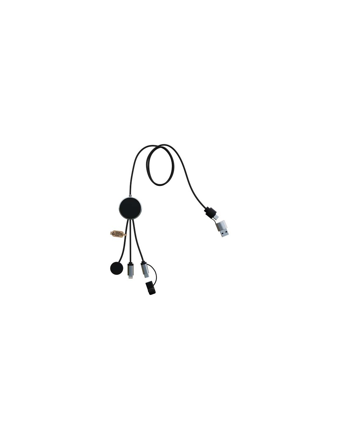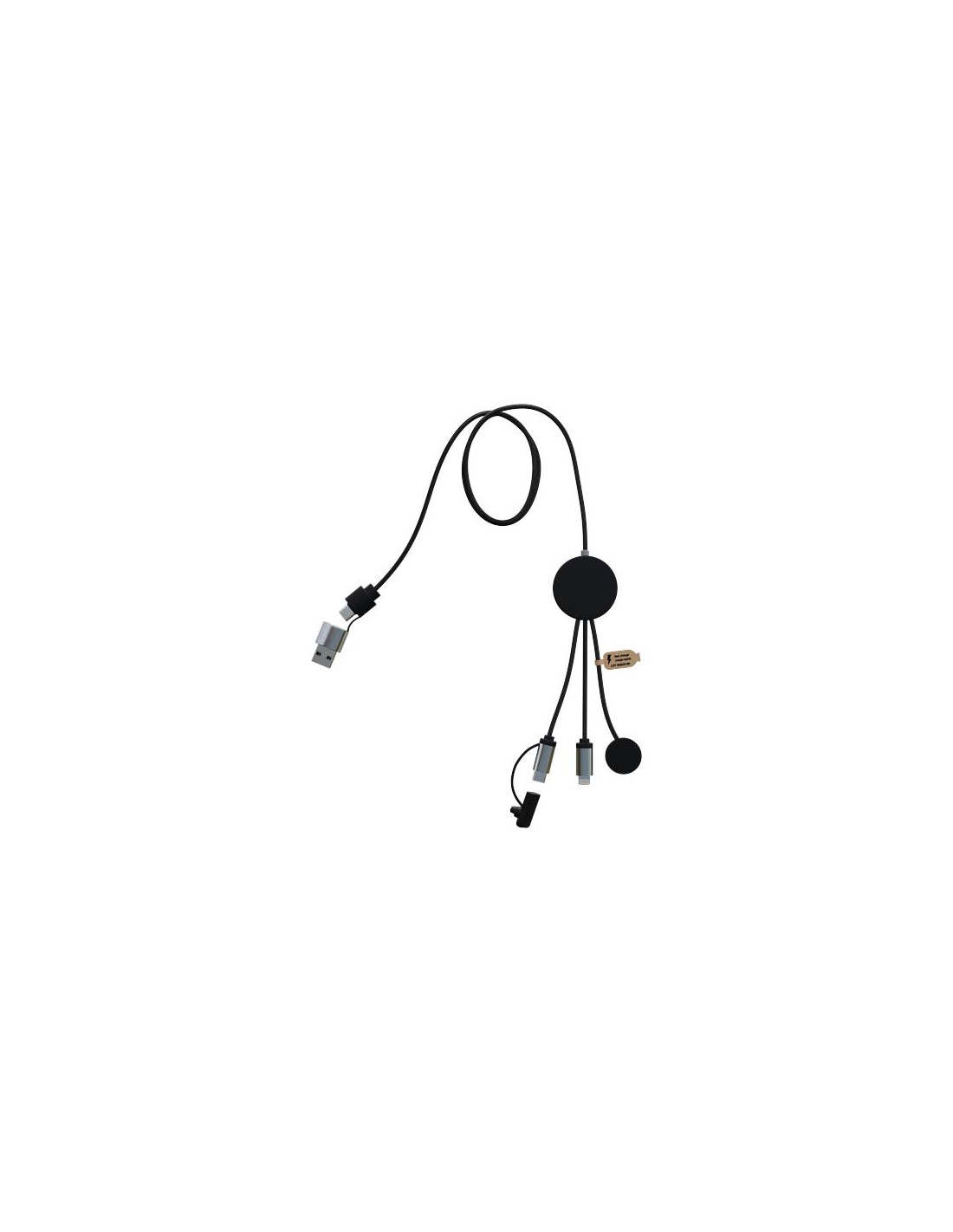 Il cavo Citala 5-in-1 per la sincronizzazione dei dati e la ricarica rapida da 27 W è realizzato in plastica riciclata. Il cavo è caratterizzato da connettori di ingresso USB-A e di Tipo-C abbinati a un connettore di uscita combinata di Tipo-C e Lightning/Micro USB. La connessione da USB-A a...