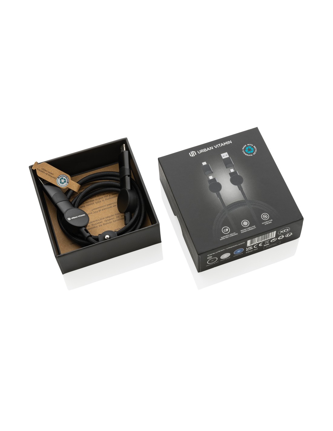 Il cavo Alasia 5-in-1 per la sincronizzazione dei dati e la ricarica rapida da 27 W è realizzato in alluminio e plastica riciclati, elegante e resistente. Il cavo è caratterizzato da connettori di ingresso USB-A e di Tipo-C abbinati a un connettore di uscita combinata di Tipo-C e Lightning/Micro...