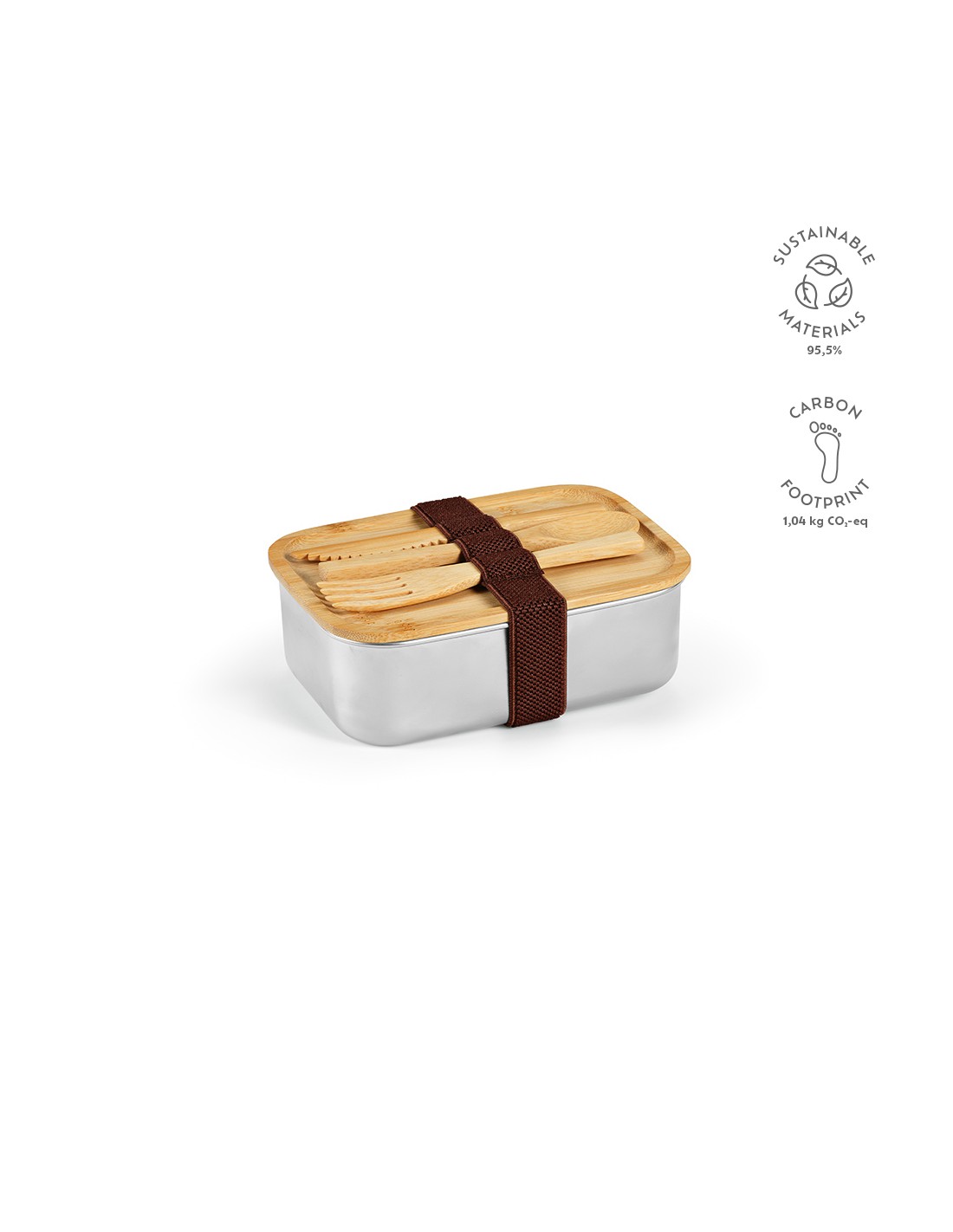 Warhol ha una capacità di 740ml (490ml netti) ed è realizzato in acciaio inox riciclato. Il coperchio in bamboo contiene le posate: forchetta, coltello e cucchiaio, tenute insieme da un elastico. Perfetto per insalate o sushi, è il tuo compagno pranzo ecologico, sempre pronto a partire. Confezionato singolarmente in una scatola kraft.