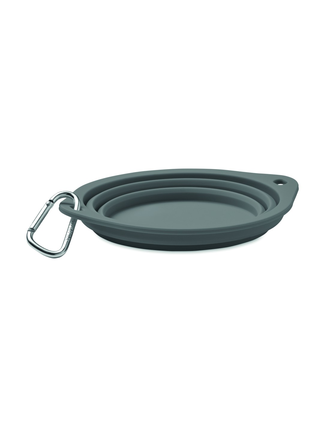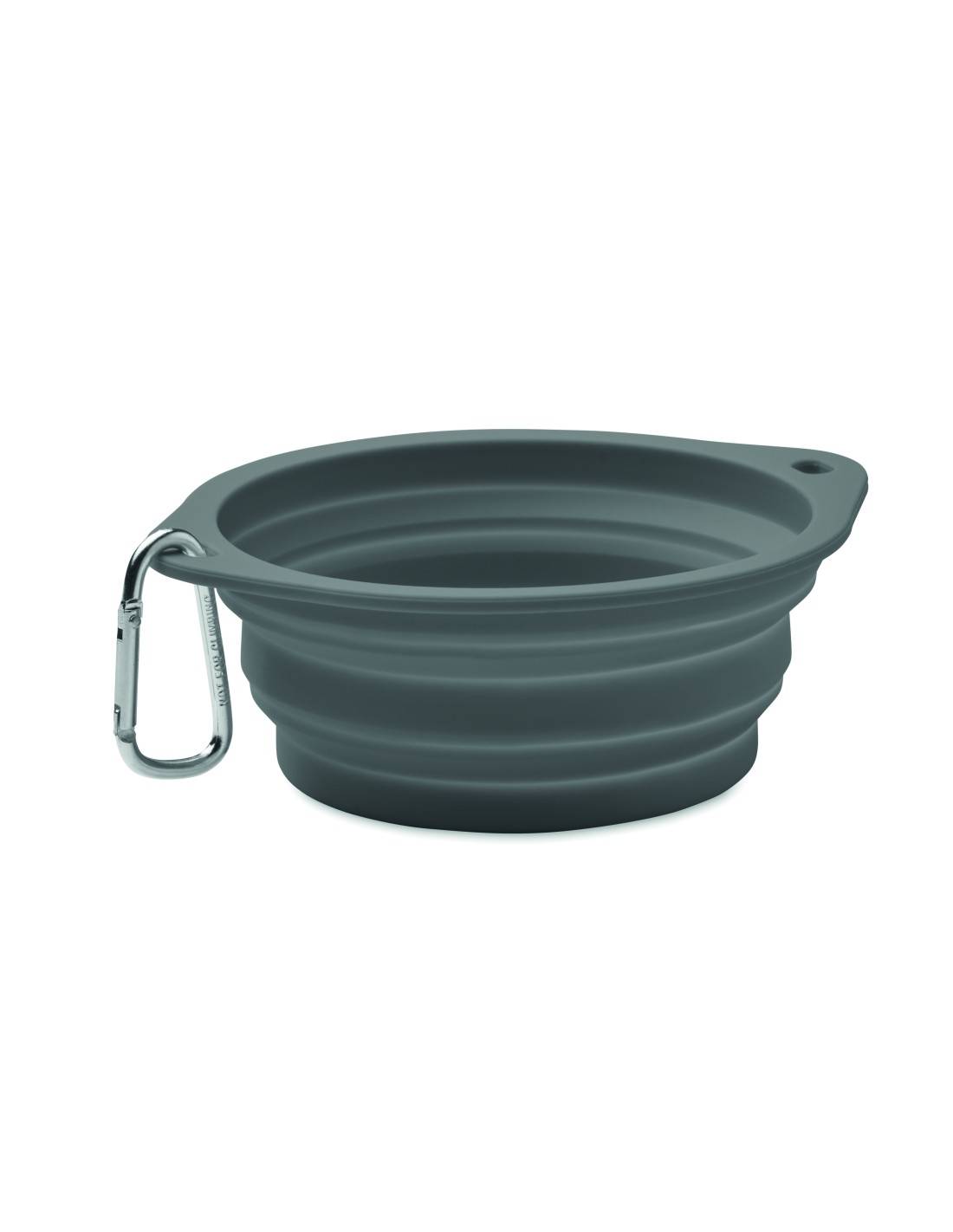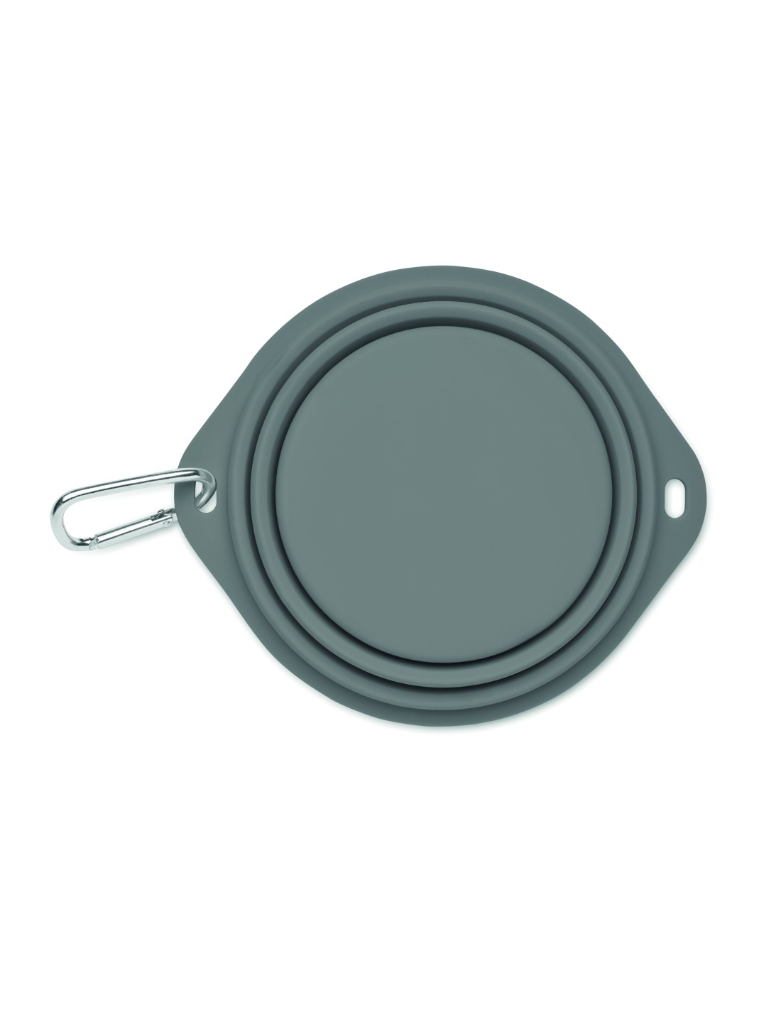 Ciotola portatile pieghevole in silicone per bere o mangiare con moschettone. Capacità: 350 ml.