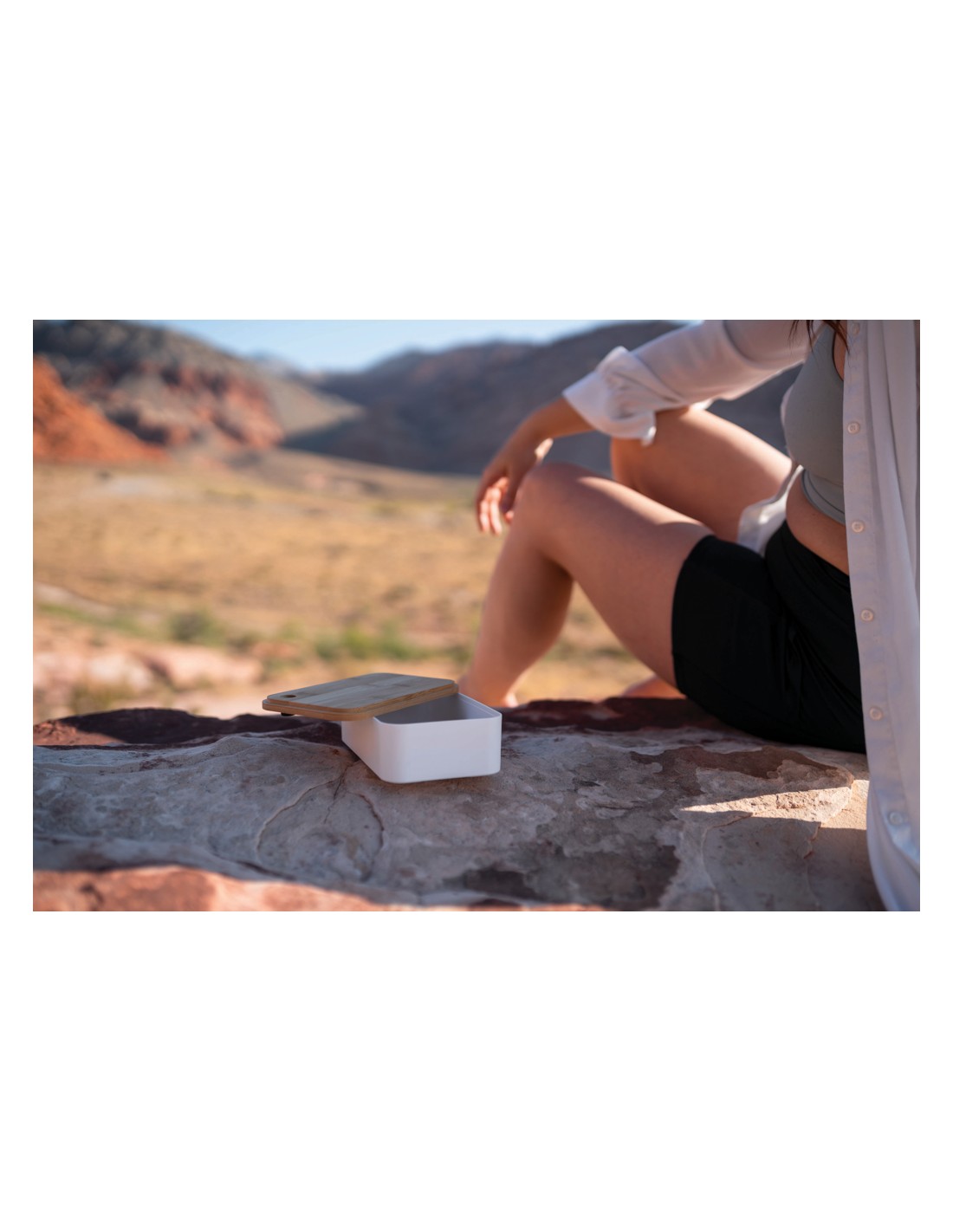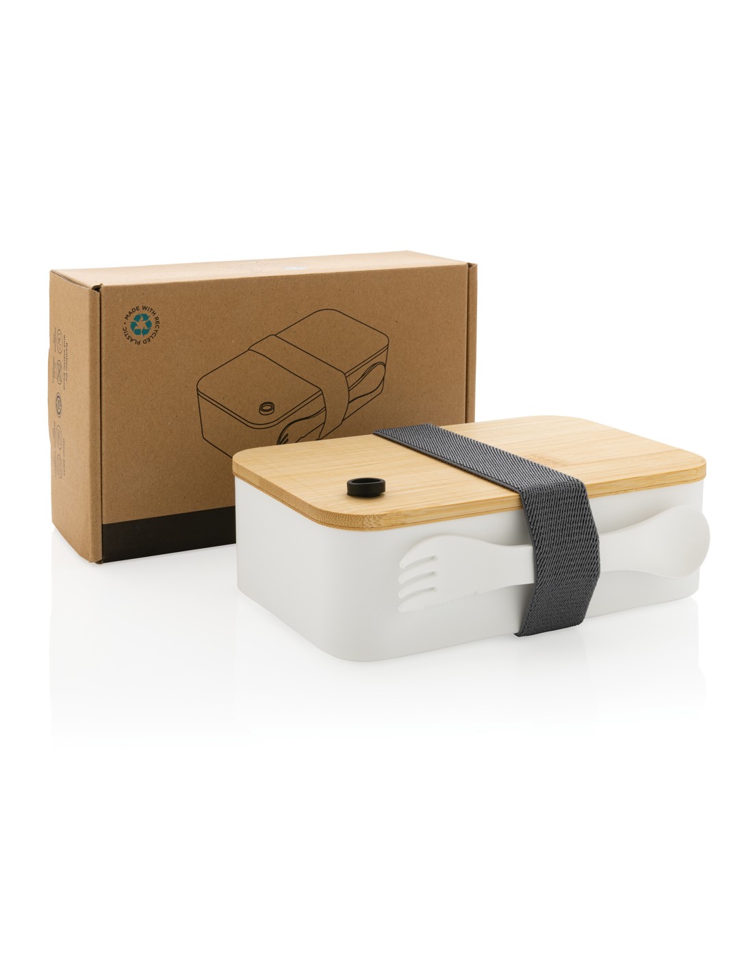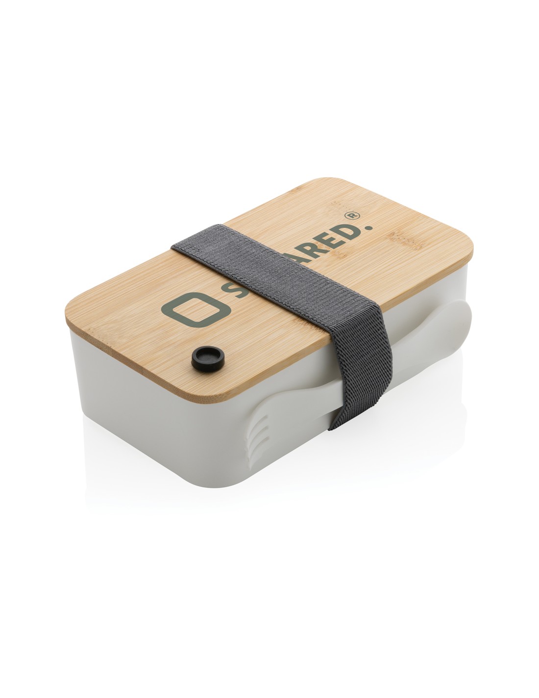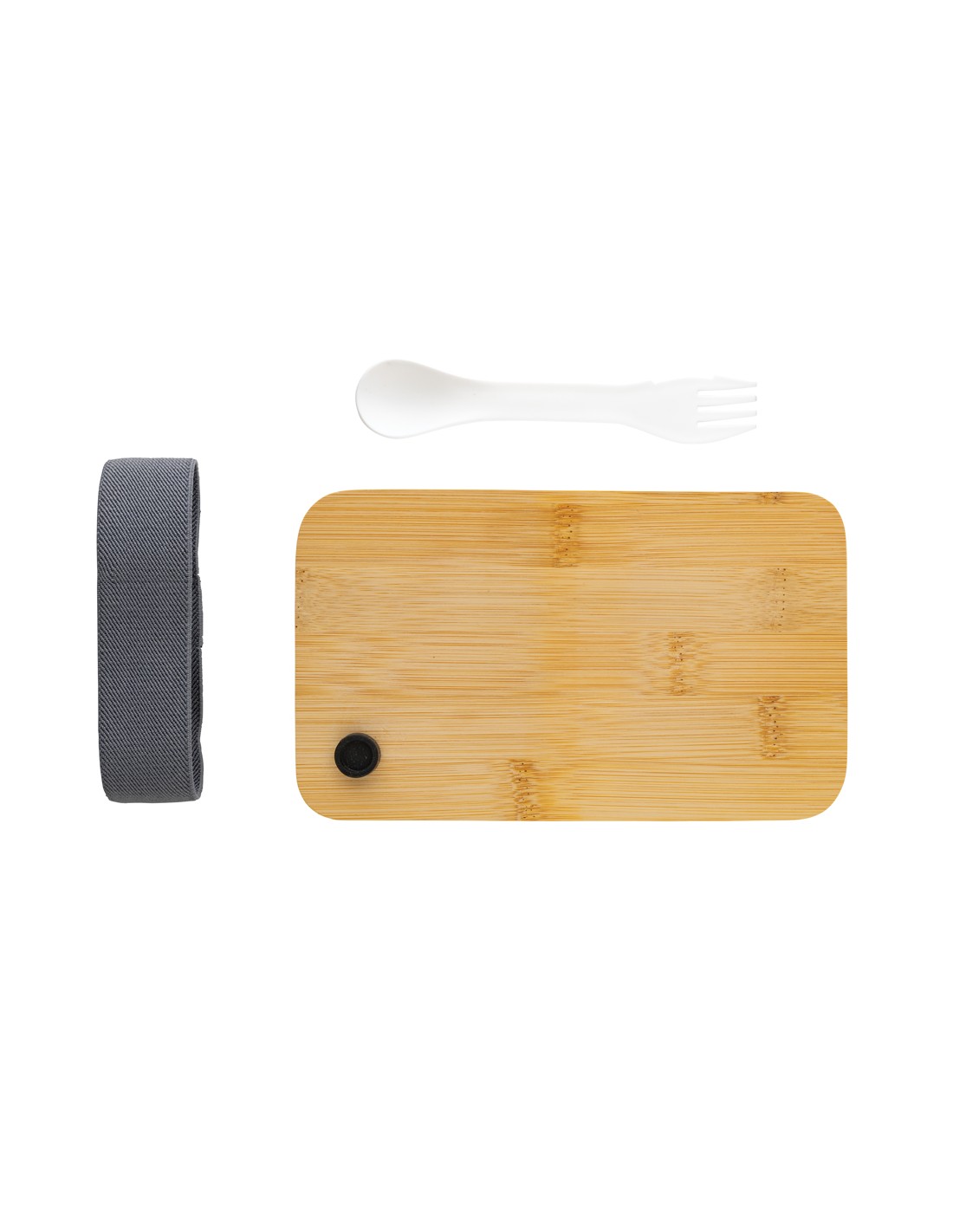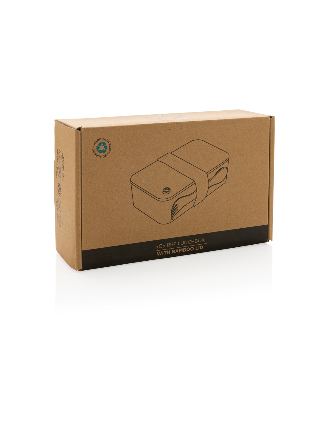 Preparare i pranzi è più facile che mai con questo portapranzo in PP riciclato certificato RCS e il coperchio in bambù. Il fondo del lunchbox è realizzato al 100% in RPET certificato RCS. La certificazione RCS garantisce una filiera completamente certificata dei materiali riciclati. Capacità 0,7 litri. Include un pratico cinturino elastico e uno spork RPET. Contenuto totale riciclato: 44% in base al peso totale dell'articolo. Compreso l'imballaggio kraft certificato FSC®. E' consigliato il lavaggio a mano.
