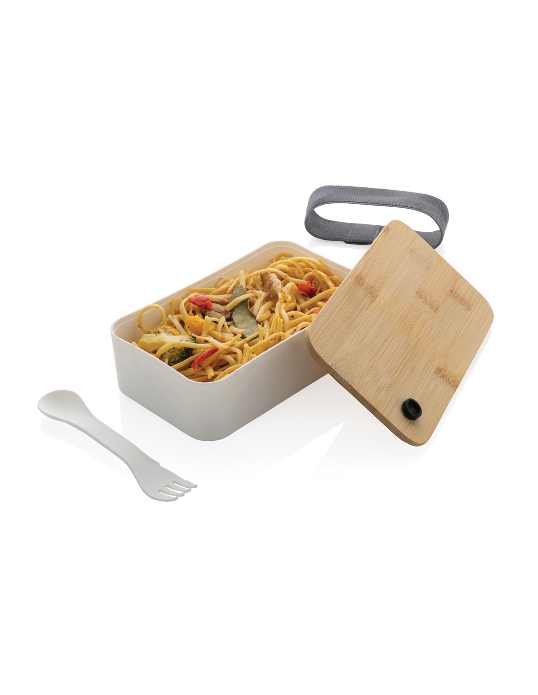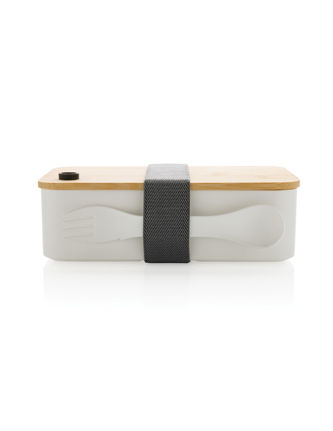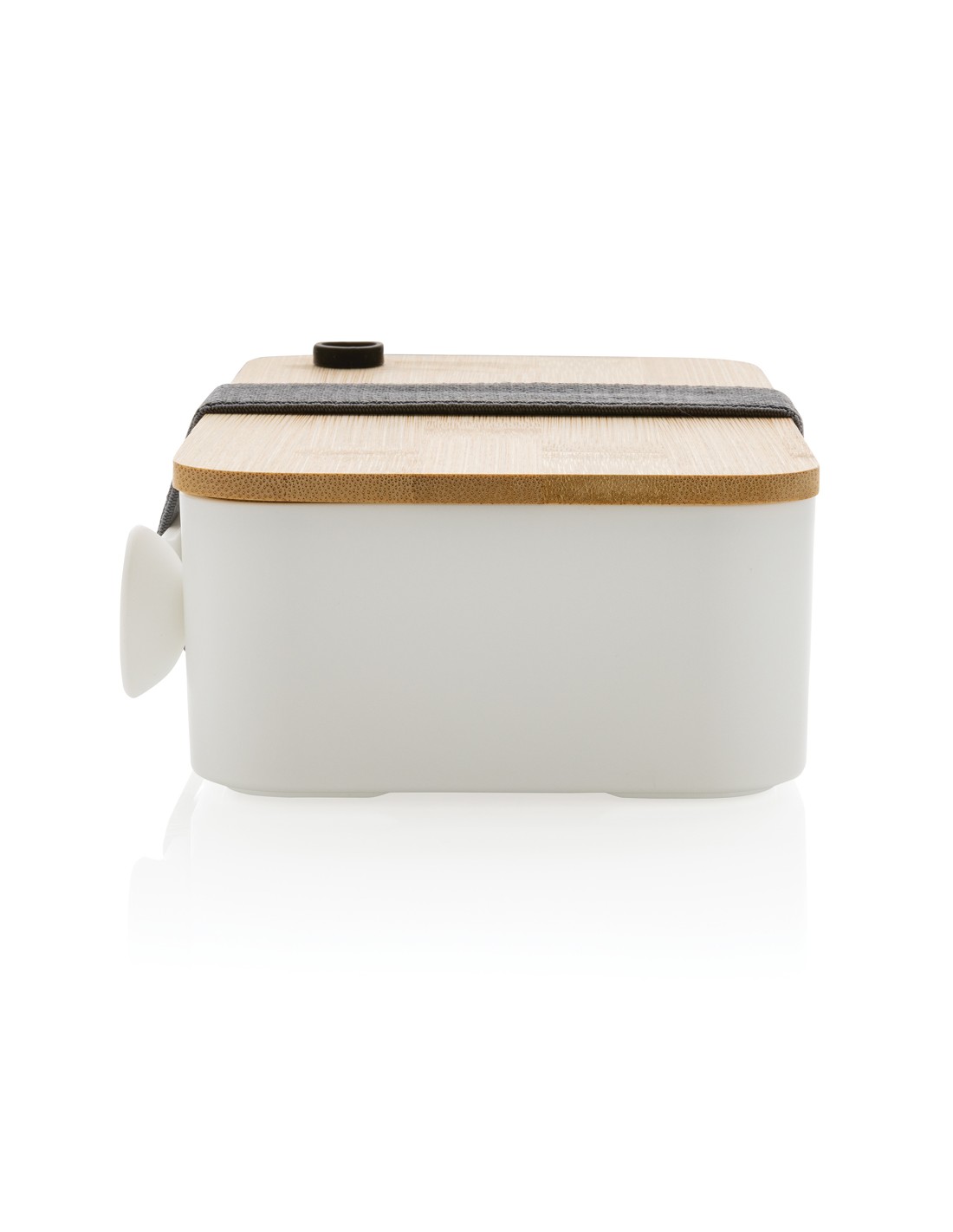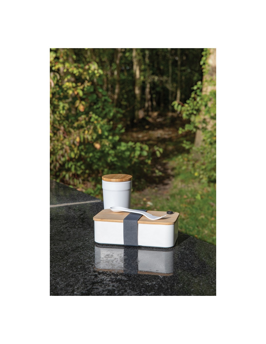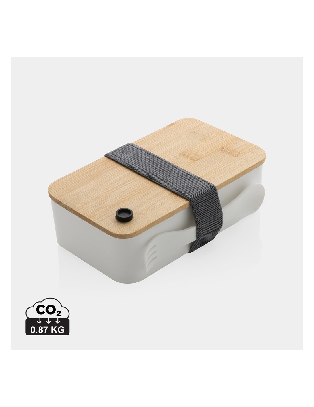 Preparare i pranzi è più facile che mai con questo portapranzo in PP riciclato certificato RCS e il coperchio in bambù. Il fondo del lunchbox è realizzato al 100% in RPET certificato RCS. La certificazione RCS garantisce una filiera completamente certificata dei materiali riciclati. Capacità 0,7 litri. Include un pratico cinturino elastico e uno spork RPET. Contenuto totale riciclato: 44% in base al peso totale dell'articolo. Compreso l'imballaggio kraft certificato FSC®. E' consigliato il lavaggio a mano.