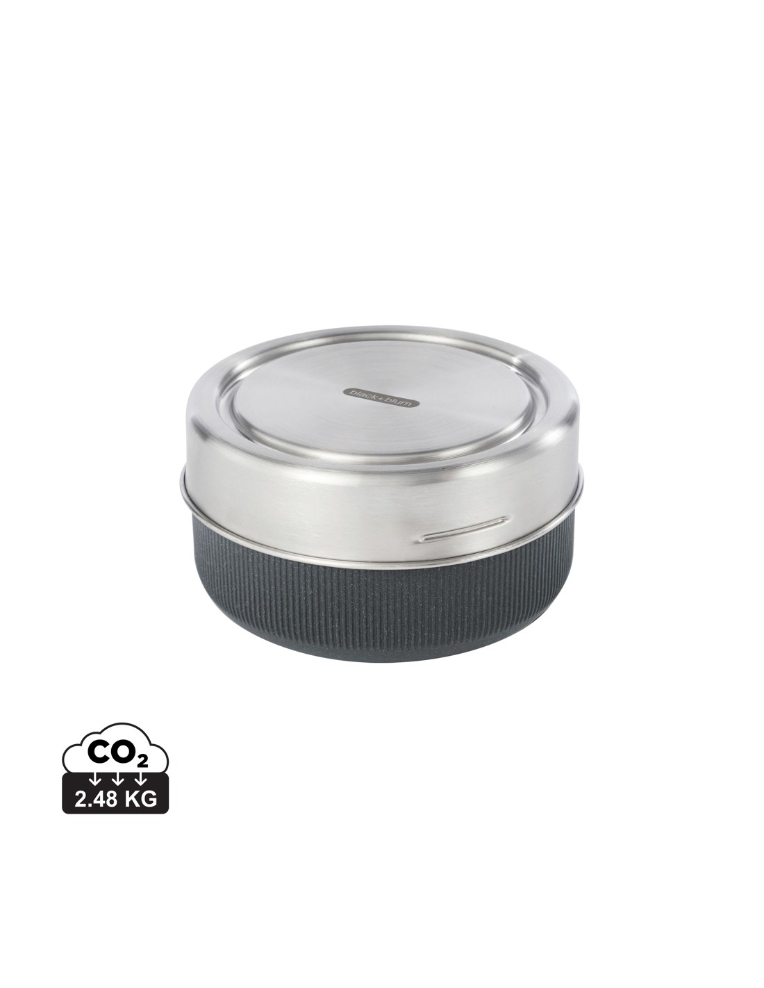 Il portavivande Titan è realizzato in acciaio inossidabile riciclato, che lo rende un'opzione più sostenibile rispetto a quelli tradizionali. Confezionato in un con sacchetto di plastica riciclata e inserito in una scatola di carta kraft riciclata. Capacità: 750 ml. Utilizzabile in lavastoviglie.