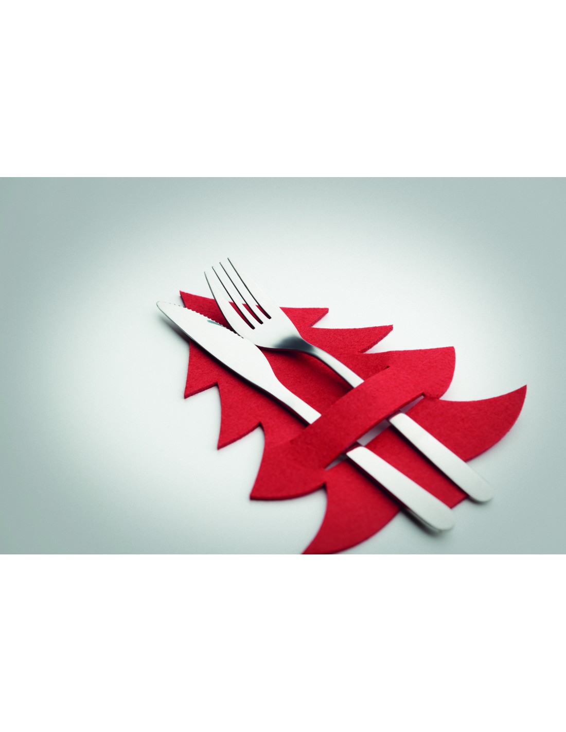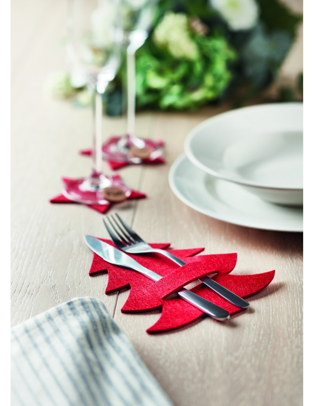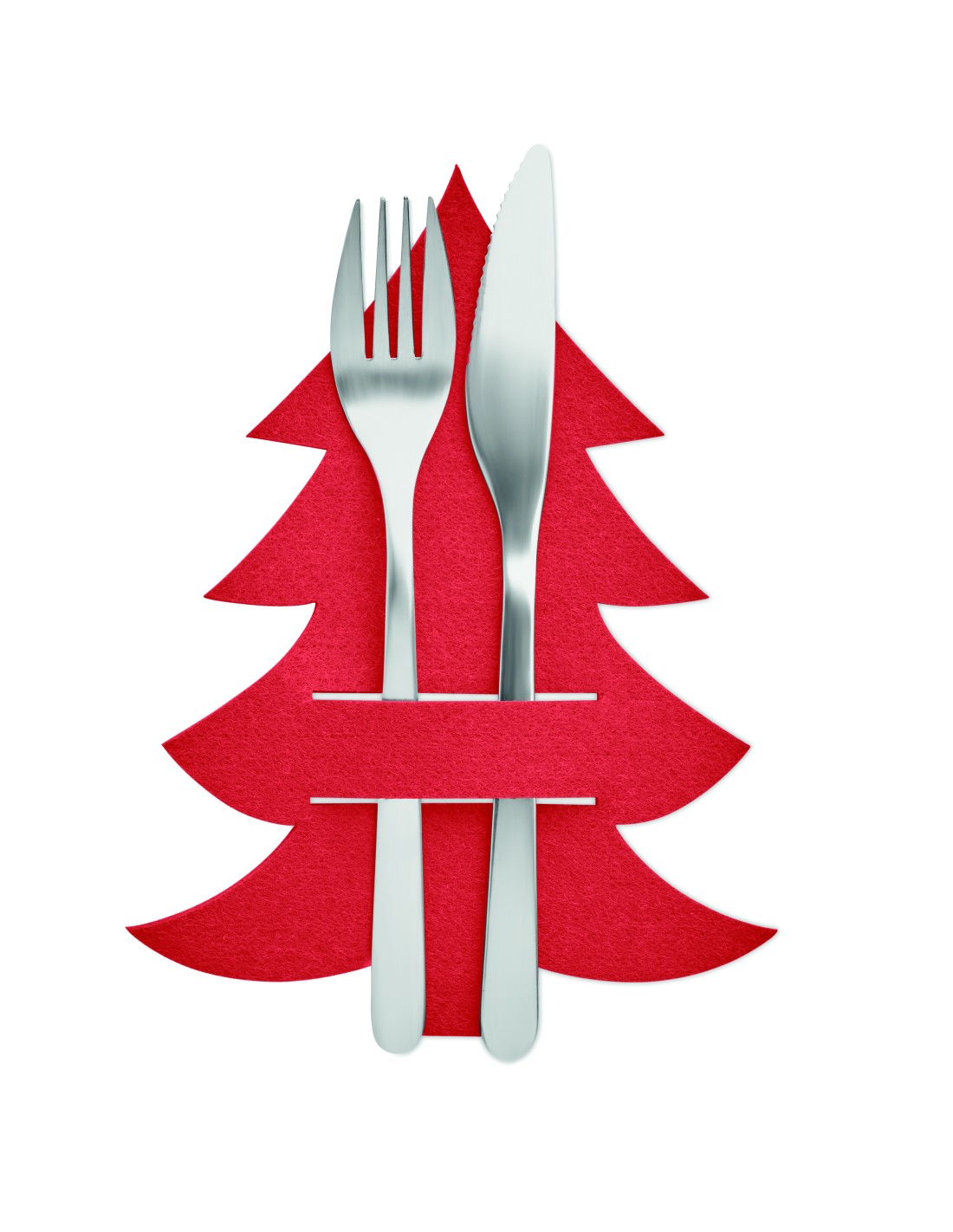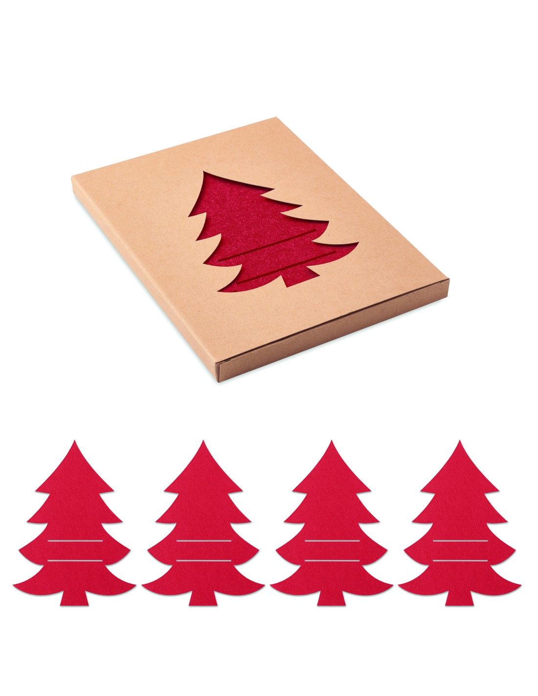 Set di 4 portaposate in feltro RPET a forma di Albero di Natale in confezione regalo.