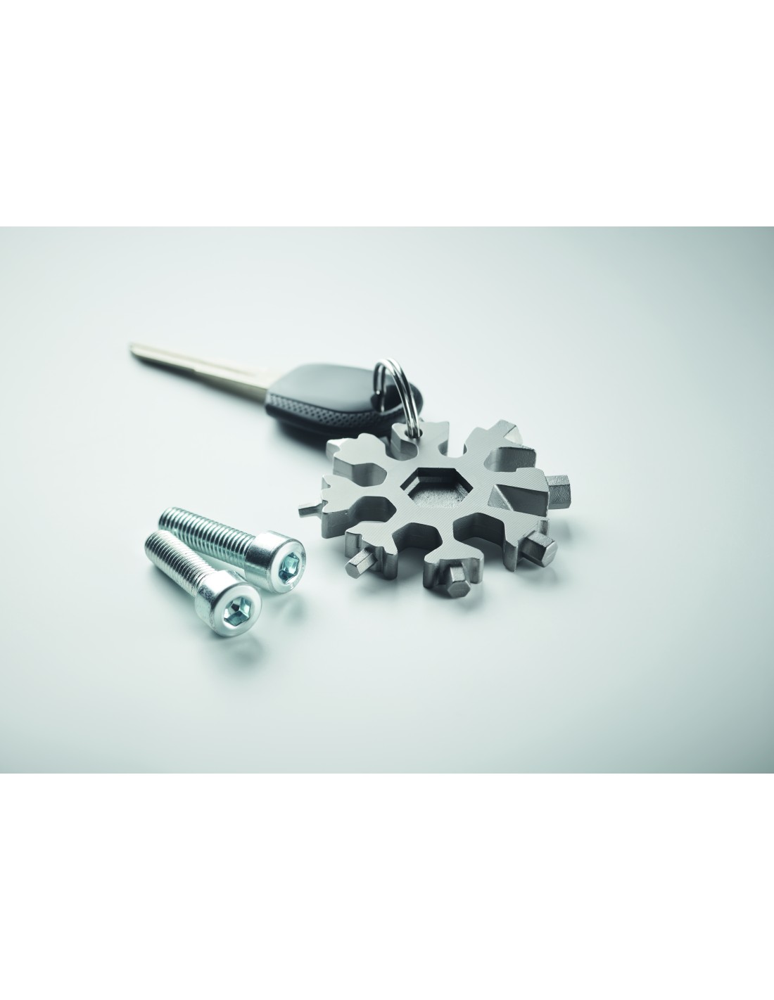 Pinza multifunzione con 8 attrezzi. Pieghevole, confezionata in pouch. In poliestere 600D.