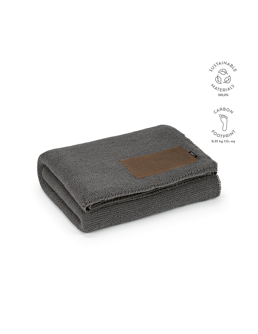 Coperta Mondrian in lana 270gsm (15%) e rPET (85%). Dimensioni 120x160 cm, confezionata in una borsa di cotone riciclato e dotata di una patch personalizzabile dedicata (15x8 cm). Comfort e stile su misura.