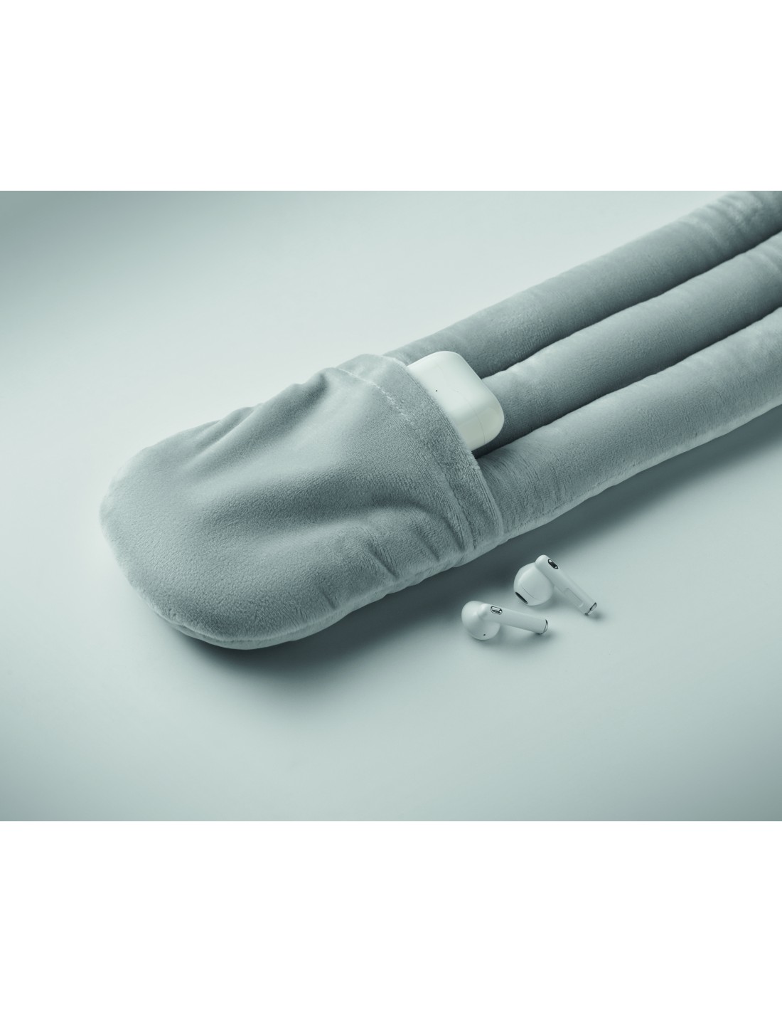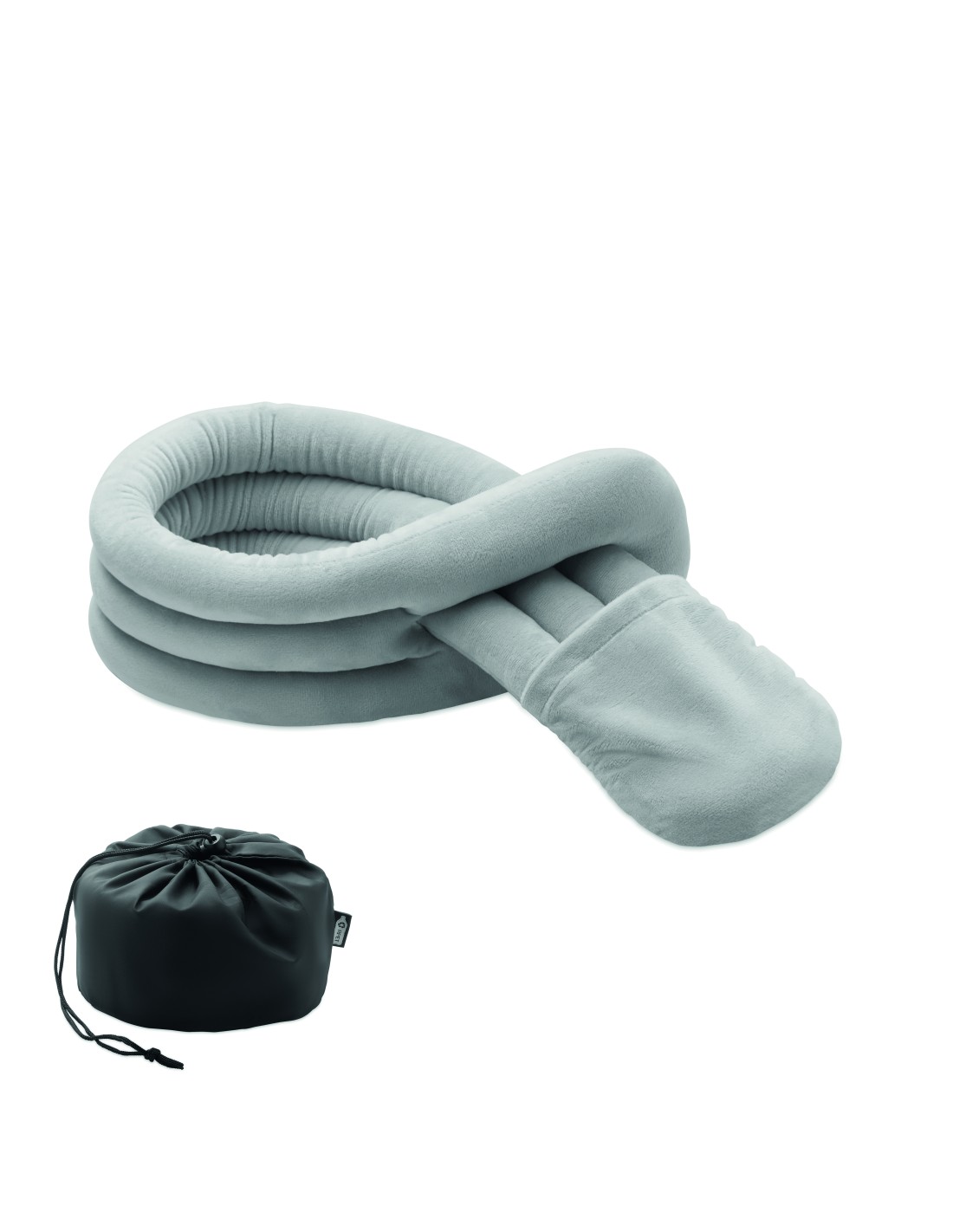 Cuscino da viaggio pieghevole in morbido poliestere e schiuma. Include una custodia con cordoncino RPET per una facile conservazione. Comodo e compatto per i viaggi.