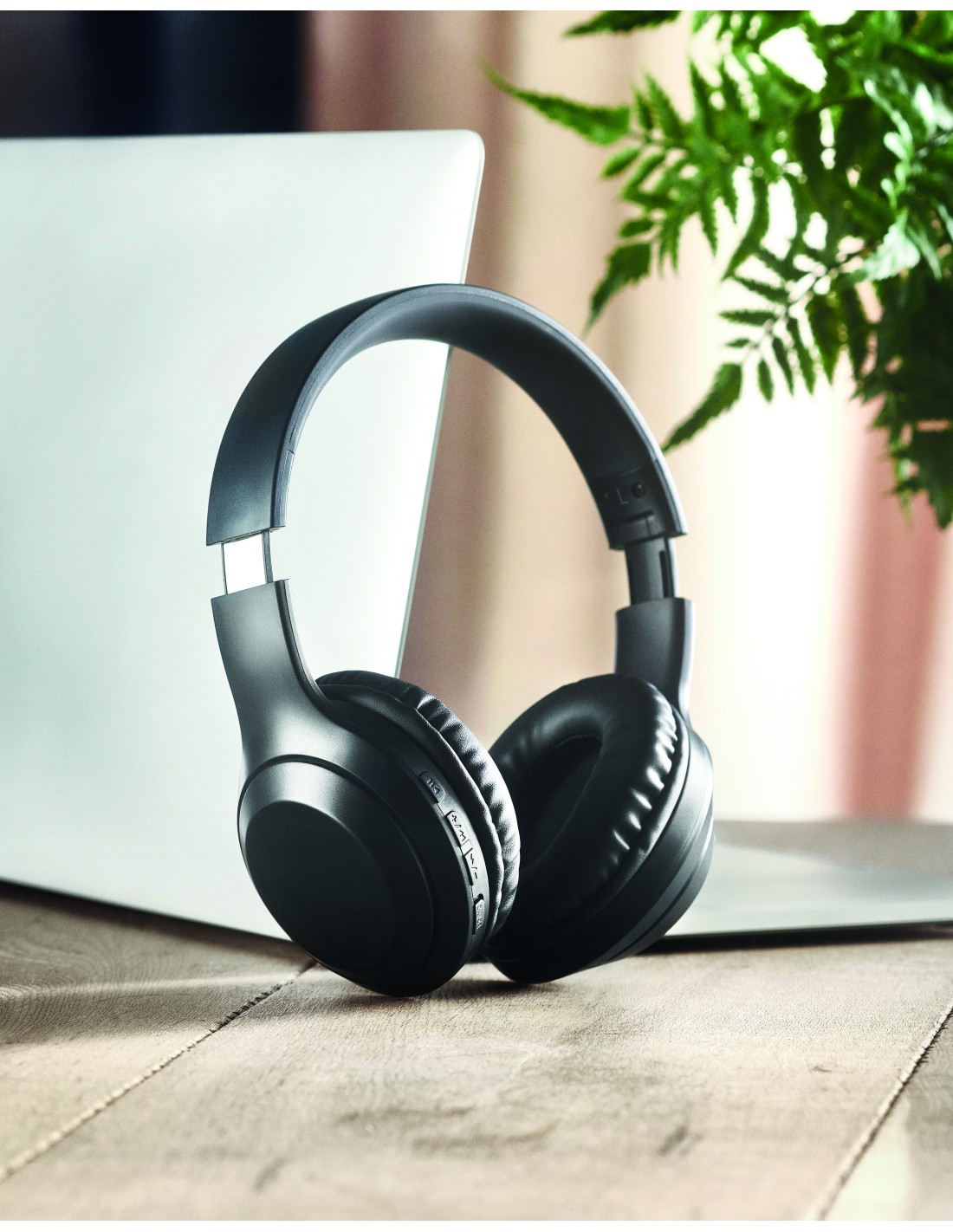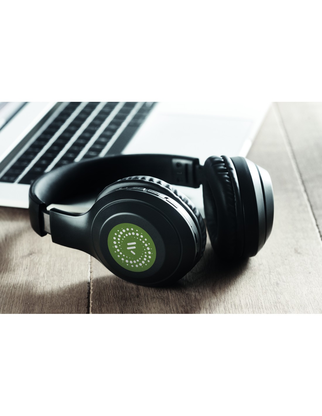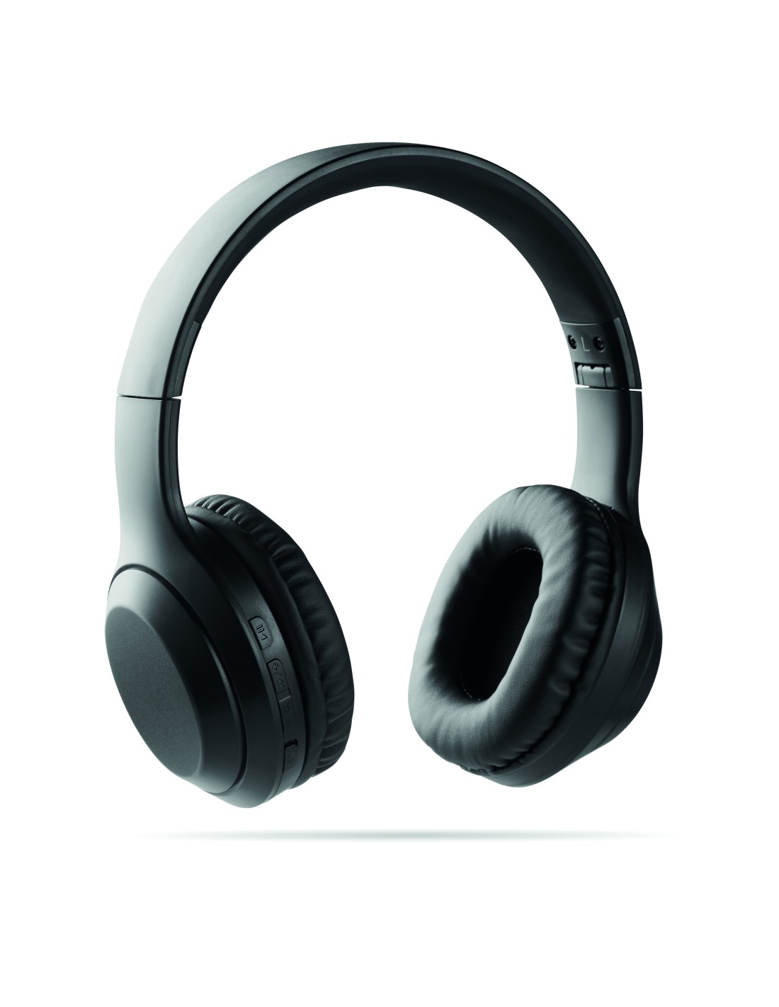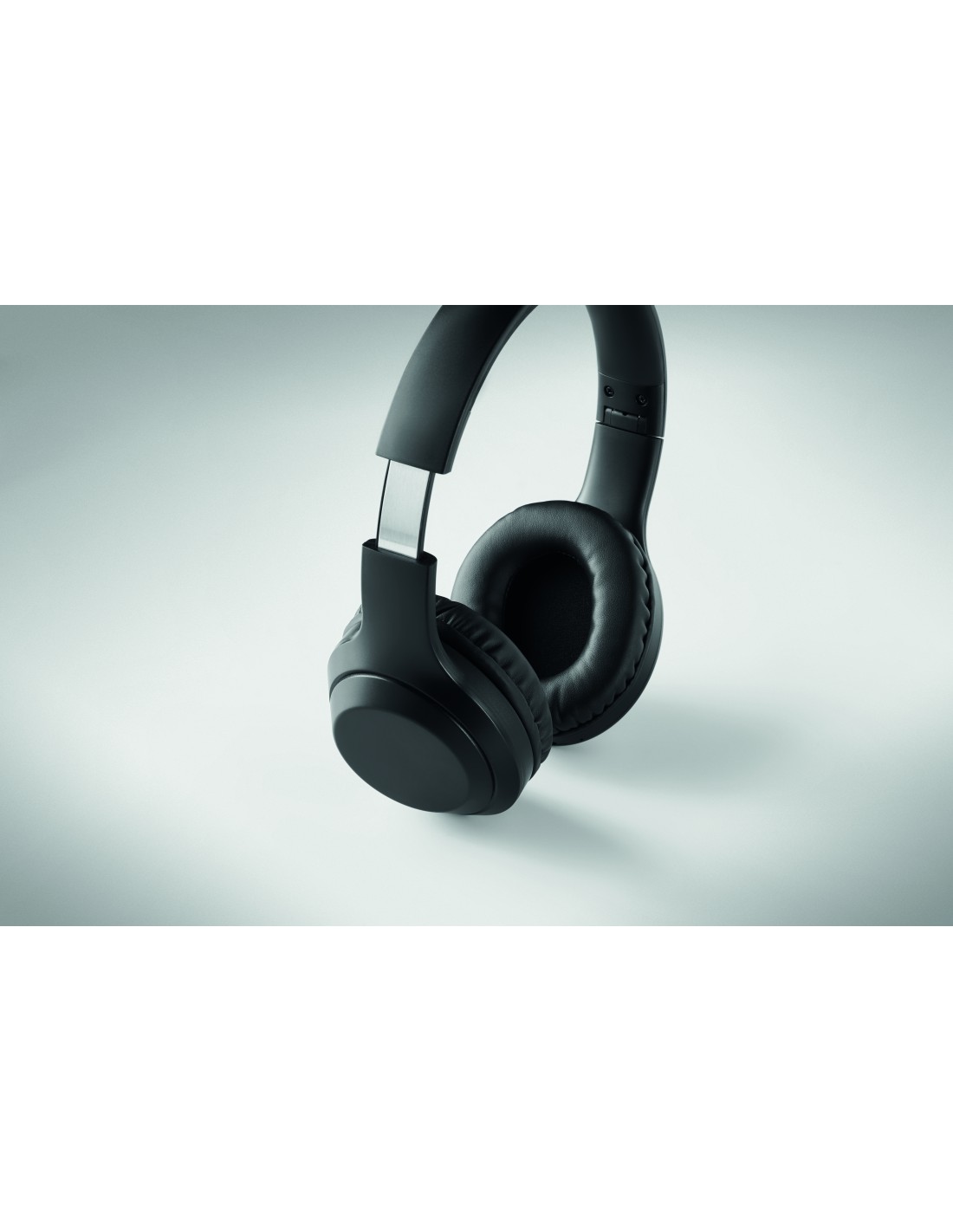 Cuffia pieghevole senza fili 5.0 in ABS. Il tutto presentato in una borsa con coulisse di cotone da 140 gr/m². Batteria ricaricabile Li-Pol 200 mAh. Funzione vivavoce e microfono incorporato. Tempo di autonomia di circa 4 ore. Include cavo di ricarica Type-C. Raggio d'azione: 10 m.