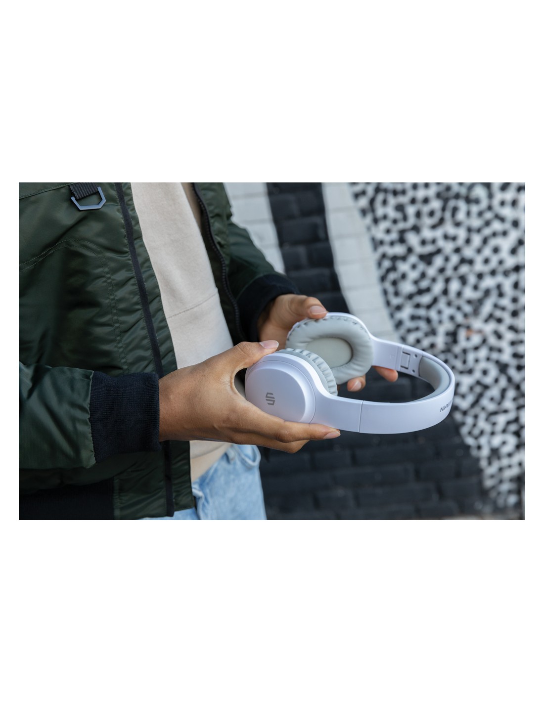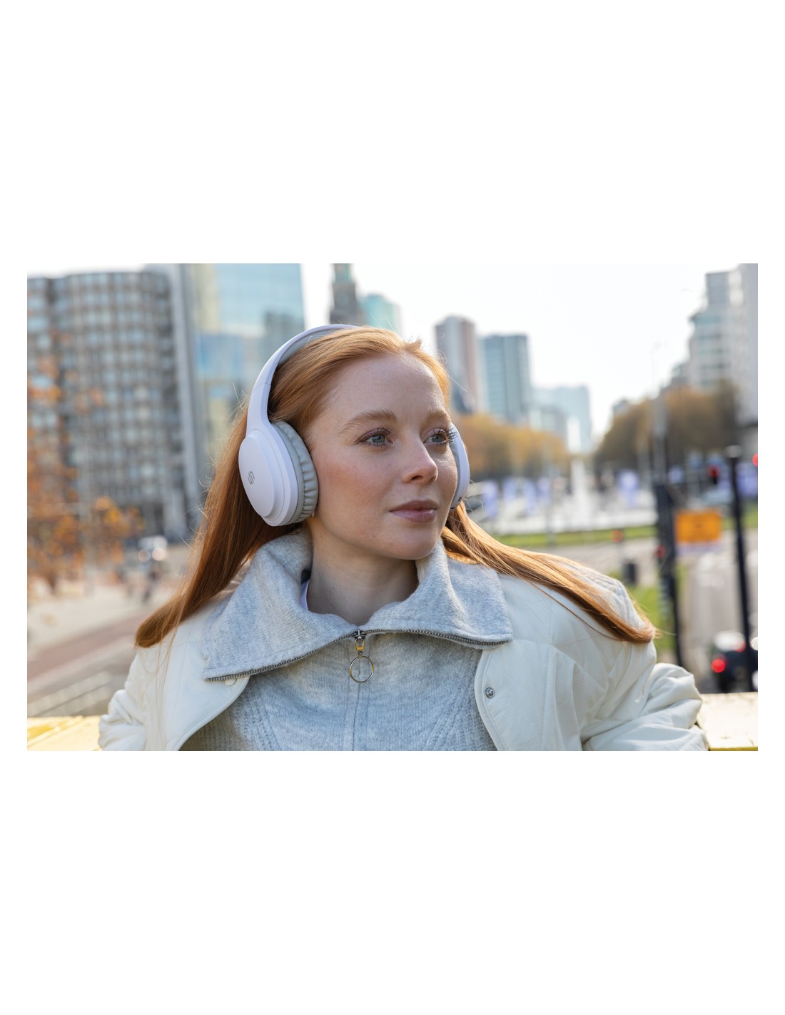 Premi il pulsante dei bassi sul lato della cuffia per ottenere una spinta extra. Perditi nel suono ricco e pulito. Potrai utilizzare le cuffie tutto il giorno grazie all'autonomia di riproduzione di 35 ore. L'elegante design over-ear rende queste cuffie perfette da indossare tutto il giorno. Piegale per portarle con te nella borsa o persino nella tasca della giacca. Se qualcuno ti chiama rispondi facilmente grazie al microfono integrato. Gli articoli Urban Vitamin sono realizzati senza PVC e confezionati in imballaggi a ridotto contenuto di plastiche.