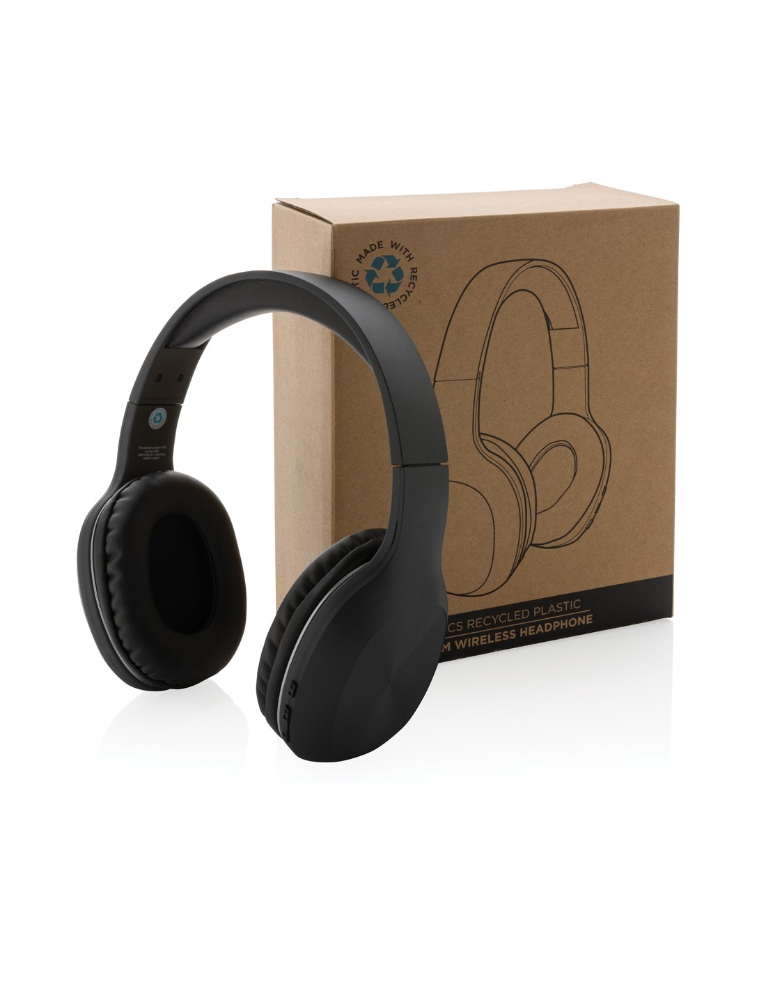 Comode cuffie wireless con tecnologia BT5.1 per una connessione super fluida e una riproduzione di lunga durata. Realizzate con ABS riciclato certificato RCS (Recycled Claim Standard). Contenuto totale riciclato: 73 % in base al peso totale dell'articolo. La certificazione RCS garantisce una filiera completamente certificata dei materiali riciclati. Il design over-ear degli auricolari consente un'esperienza sonora perfetta. La batteria al litio incorporata da 200 mAh che consente un tempo di riproduzione fino a 5 ore e può essere ricaricata completamente in 1,5 ore. Distanza operativa fino a 10 metri. Include microfono per rispondere alle telefonate, cavo di ricarica in TPE riciclato certificato GRS. Confezionate in scatola FSC® mix. Articolo e accessori 100% senza PVC.