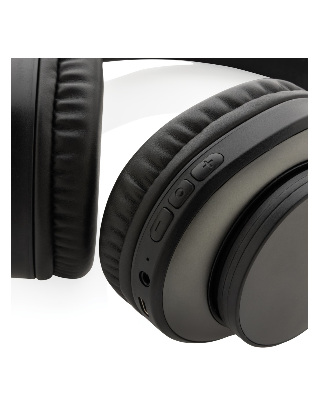 Cuffie wireless pieghevoli con bassi potenti. Realizzate con alluminio riciclato certificato RCS (Recycled Claim Standard) e ABS. Contenuto totale riciclato: 70% in base al peso totale dell'articolo. La certificazione RCS garantisce una filiera completamente certificata dei materiali riciclati. L'alluminio non perde le sue caratteristiche nel processo di riciclaggio e può essere riciclato all'infinito. Compreso di cavo di ricarica type C in alluminio riciclato certificato RCS, TPE e PET. La batteria da 600 mAh consente una riproduzione fino a 15 ore e può essere ricaricata completamente in 2 ore. Con BT 5.3 per un collegamento fluido fino a 10 metri. Confezionato in confezione FSC® mix. Articolo e accessori 100% senza PVC. Include microfono per rispondere alle chiamate.