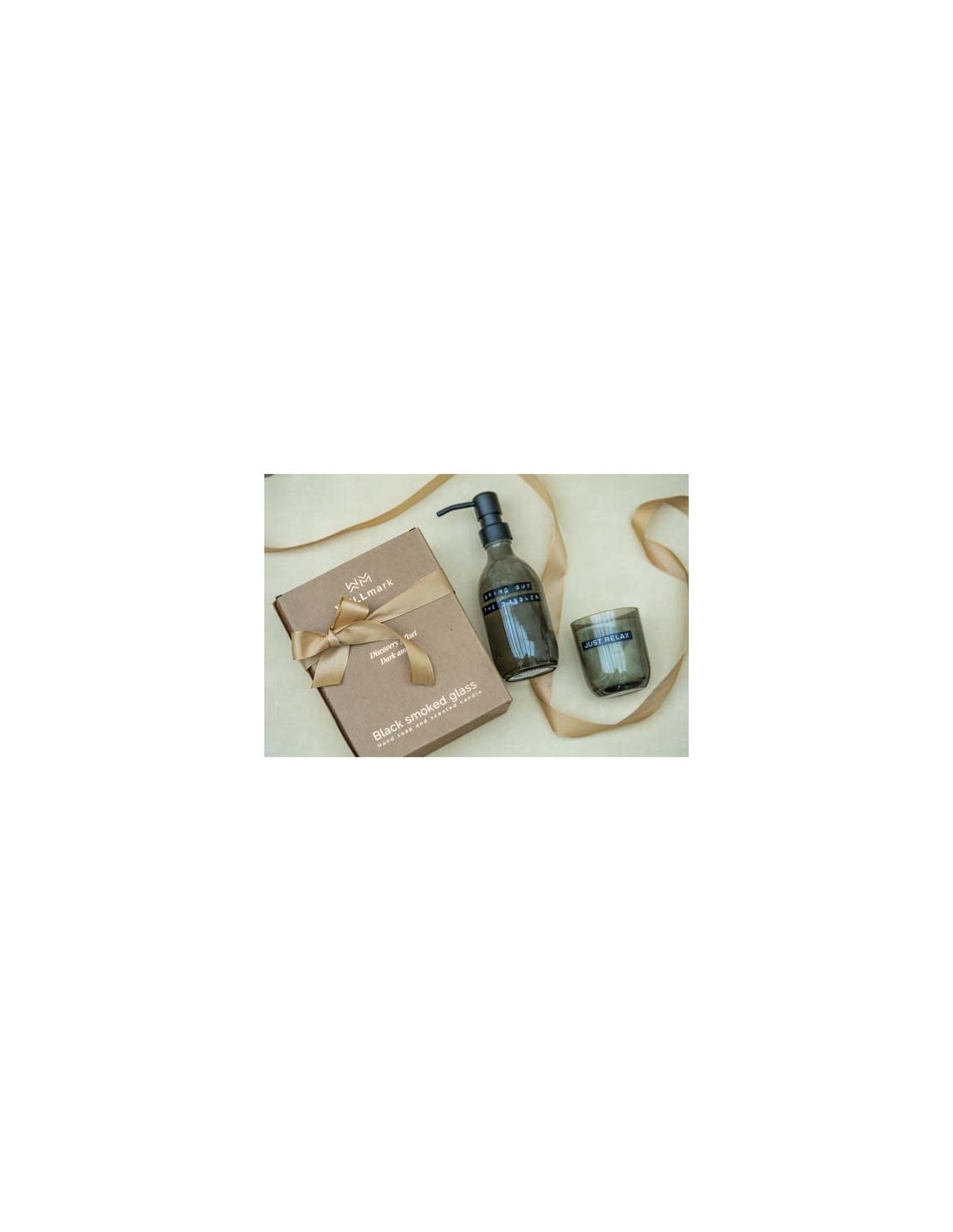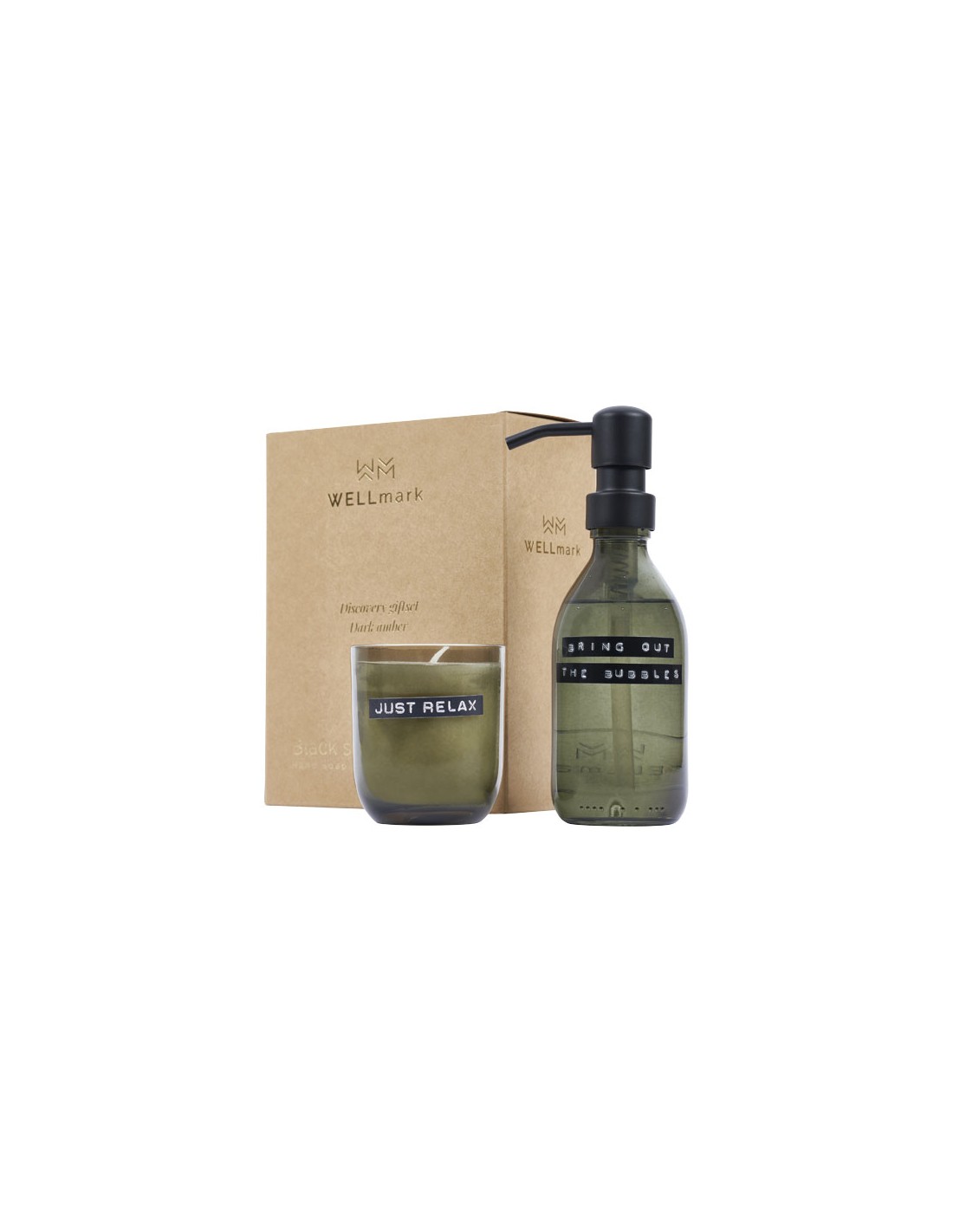 Set di dispenser di sapone per le mani da 200 ml e candela profumata da 150 g con fragranza ambra scura Wellmark Discovery