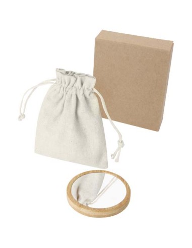 Specchio rotondo in bambù per un tocco naturale ed elegante. FornitO in un sacchettino di cotone.