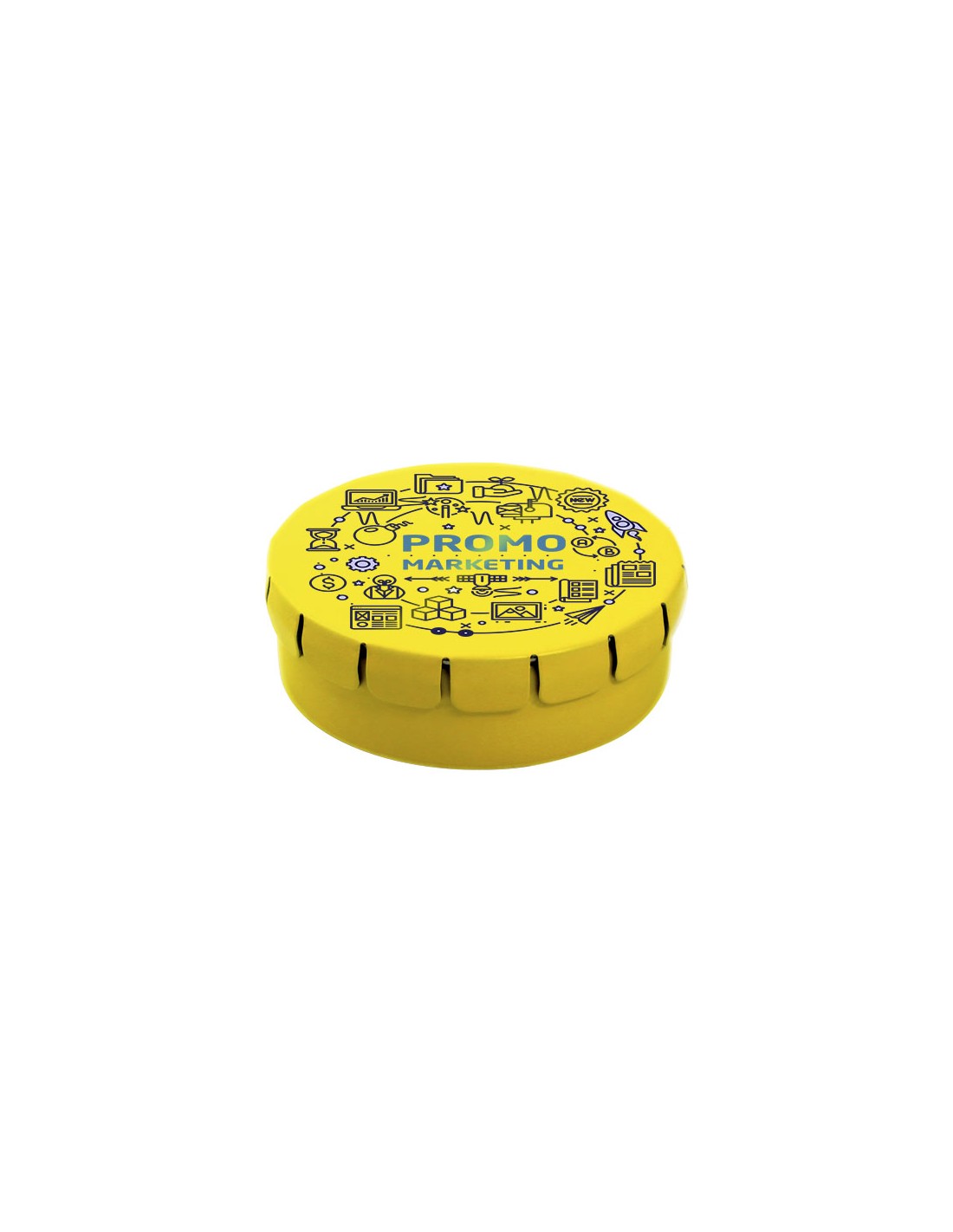 Fruit drops in contenitore di latta con facile apertura a scatto. Il contenitore può essere ordinato in una vasta gamma di colori e riempito con caramelle dai gusti diversi: mentine tradizionali, mentine extra forti, mentine senza zucchero, gelatine di frutta, caramelle a forma di cuore e al...