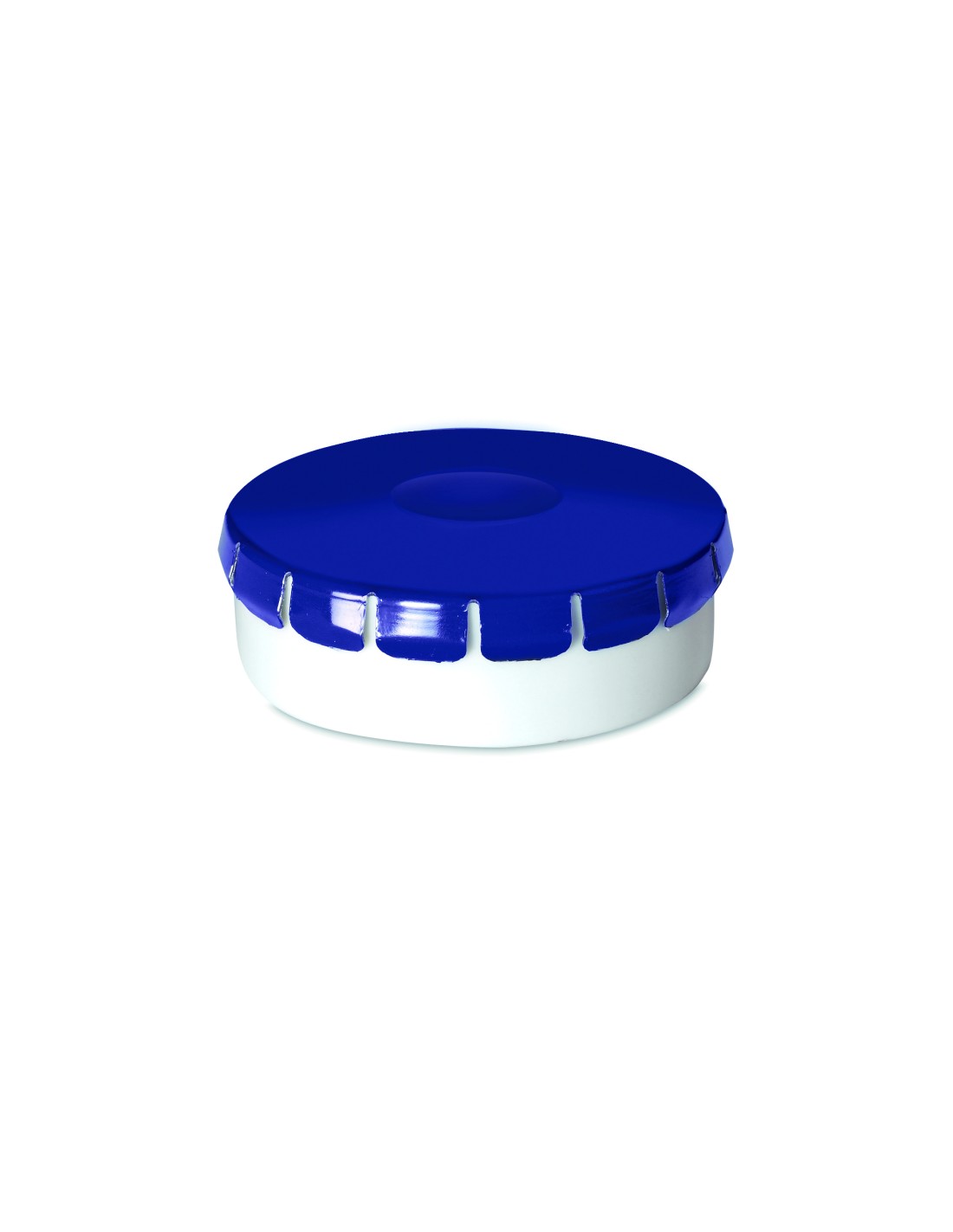 Mentine senza zucchero in contenitore di latta con facile apertura a scatto. Il contenitore può essere ordinato in una vasta gamma di colori e riempito con caramelle dai gusti diversi: mentine tradizionali, mentine extra forti, mentine senza zucchero, gelatine di frutta, caramelle a forma di...