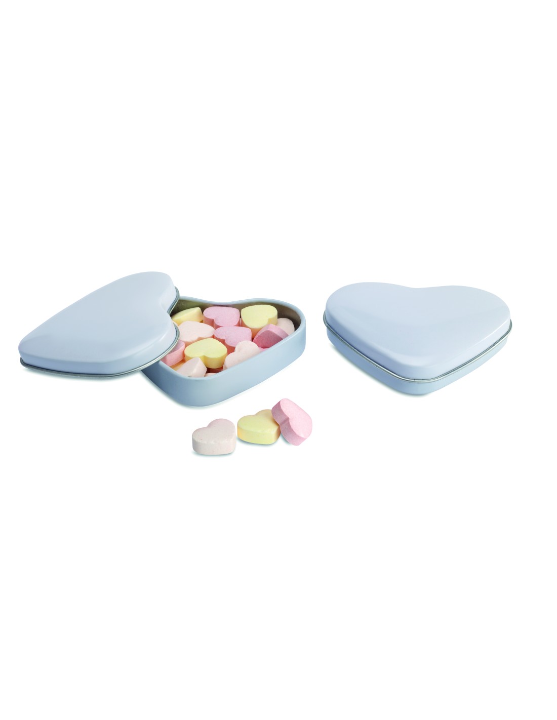 Porta caramelle (24 gr. inclusi) a forma di cuore. In latta.