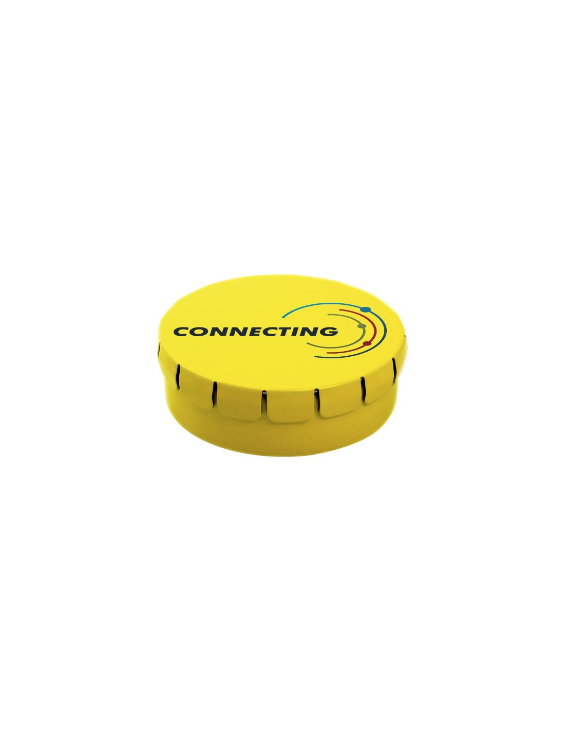 Mentine extra forti in contenitore di latta con facile apertura a scatto. Il contenitore può essere ordinato in una vasta gamma di colori e riempito con caramelle dai gusti diversi: mentine tradizionali, mentine extra forti, mentine senza zucchero, gelatine di frutta, caramelle a forma di cuore e al gusto fragola, cannella, caramelle al limone e menta o cioccolatini. Il coperchio può essere decorato con una stampa digitale a colori.