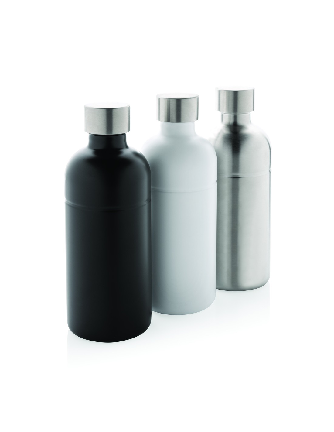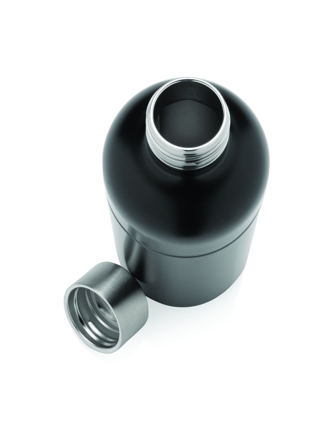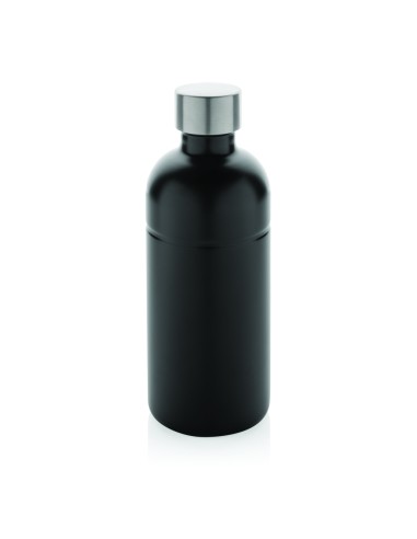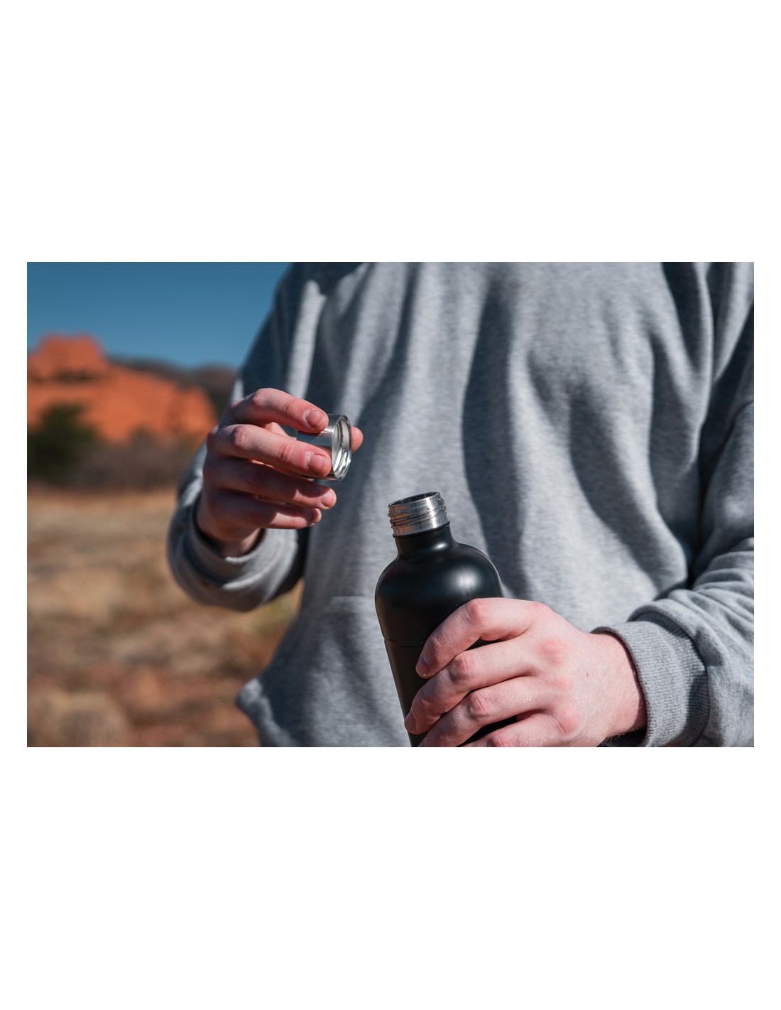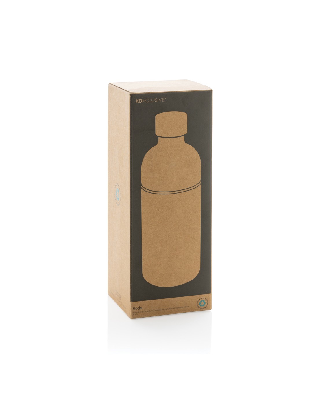 Questa bottiglia per bibite è realizzata in acciaio inossidabile riciclato ed è perfetta per il trasporto e l'idratazione quotidiana. Il design unico consente di utilizzarla anche per le bevande gassate ed è garantita a prova di perdite. Realizzata con materiali riciclati certificati RCS (Recycled Claim Standard). La certificazione RCS garantisce una catena di approvvigionamento dei materiali riciclati completamente certificata. Contenuto totale di materiale riciclato: 85% in base al peso totale dell'articolo. Senza BPA. Capacità 800 ml. Inclusa confezione kraft certificata FSC®. Design registrato®.