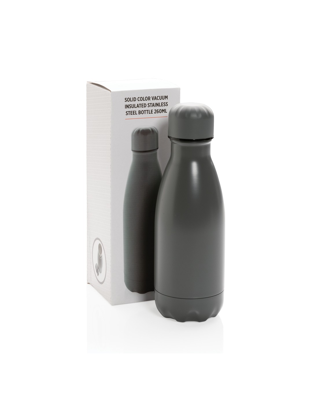 Aumenta il tuo consumo d'acqua quotidiano grazie a questa bottiglia termica a tinta unita in acciaio inossidabile. Manterrà le tue bevande fredde per 15 ore e calde per 5. La base è progettata per essere compatibile con quasi tutti i porta bicchieri. Questa bottiglia dal design elegante ti aiuterà a rimanere idratato durante i tuoi spostamenti. Con la sua capacità da 260ml è ideali per i bambini.