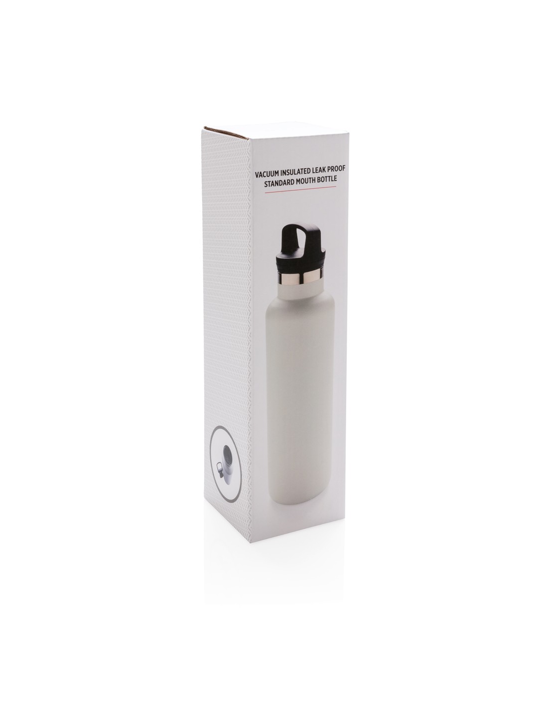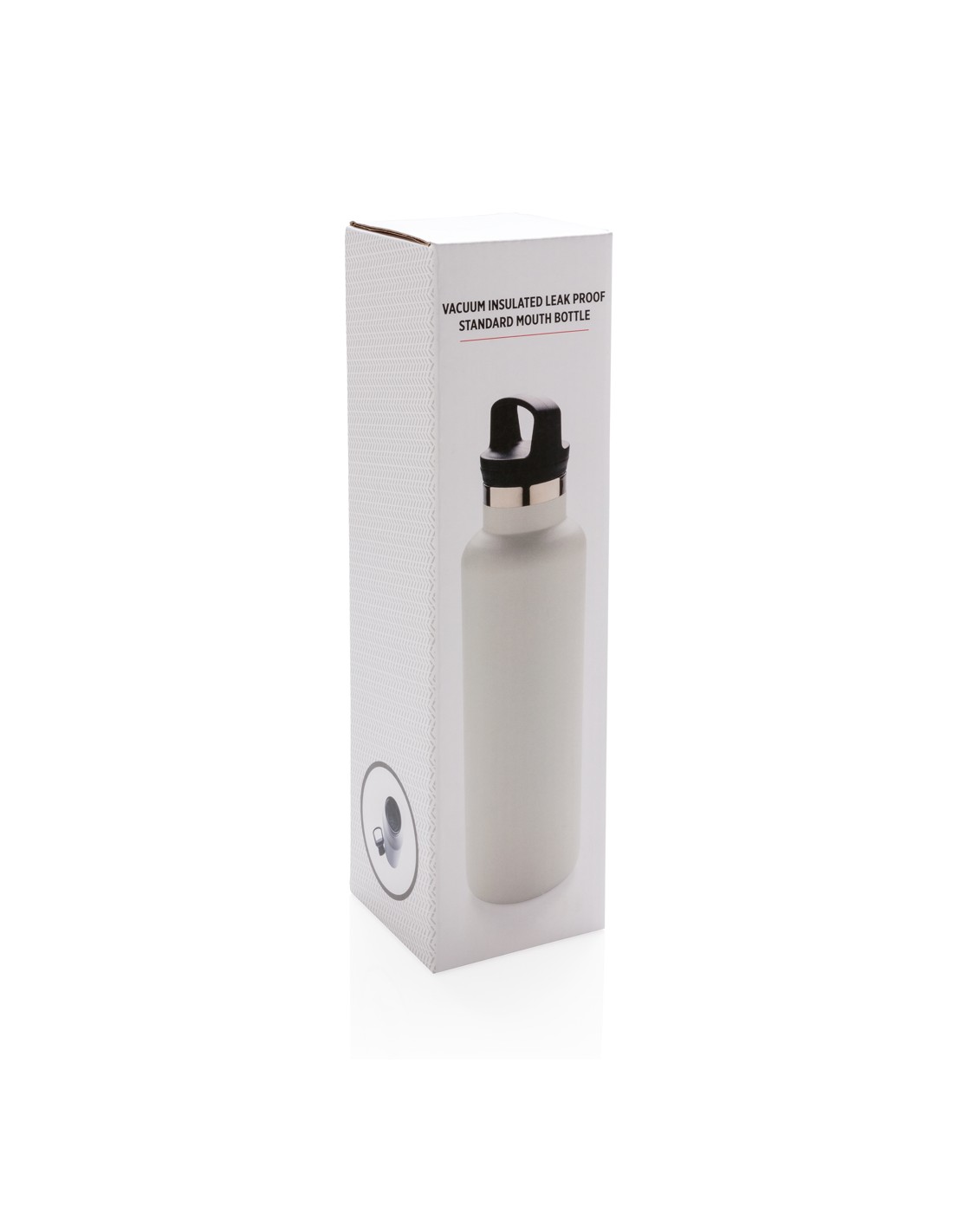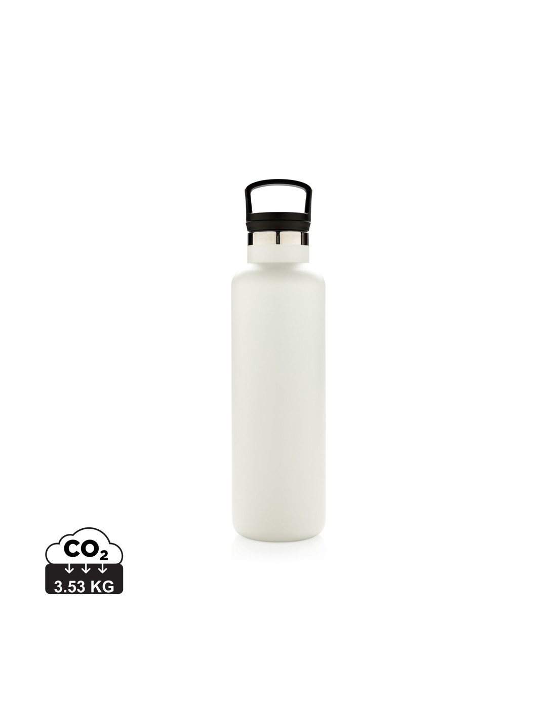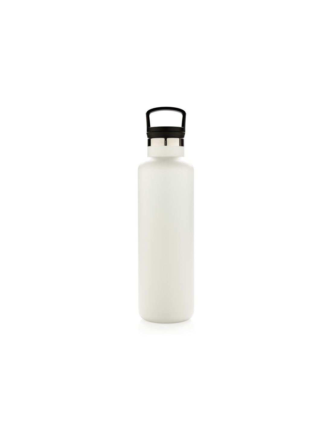 Bottiglia isolata a vuoto con finiture sabbiate. Tappo 2 in 1 con filtro ideale per infusi o te caldi. L'apertura standard ti consente di sorseggiare facilmente o aggiungere cubetti di ghiaccio. Fatta per durare, ideale in ogni circostanza. La parete interna in acciaio inossidabile 304 e la parete esterna in acciaio inossidabile 201 mantengono le tue bevande calde per 5 ore e fredde per 15. In più colori. Il colore 'bianco sporco' è PMS Cool Gray 1. Capacità 600 ml.