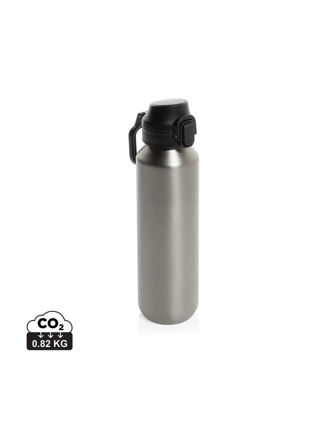 La bottiglia Via è realizzata in acciaio 304 riciclato certificato RCS. E' caratterizzata da una struttura a parete singola con un esclusivo coperchio avvitabile e bloccabile a prova di perdite. Si utilizza con una sola mano. Basta premere il bottone per aprire il coperchio e sorseggiare facilmente. Può essere utilizzata solo per bevande fredde. Realizzata con materiali riciclati certificati RCS (Recycled Claim Standard). La certificazione RCS garantisce una catena di approvvigionamento dei materiali riciclati completamente certificata. Contenuto totale di materiale riciclato: 73% in base al peso totale dell'articolo. Senza BPA. Confezionata sfusa. Capacità 600 ml.