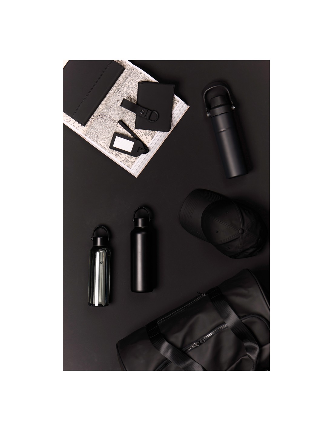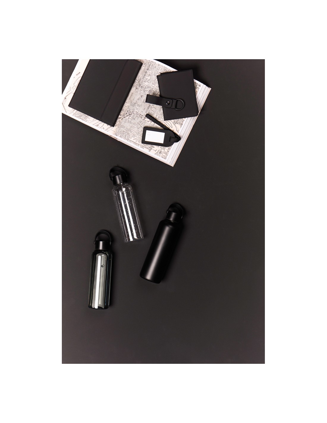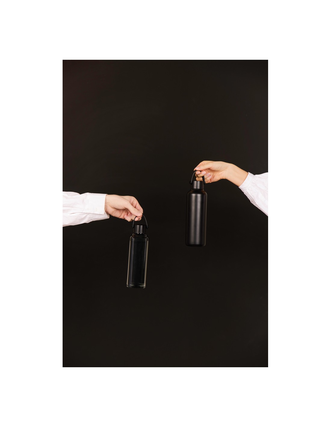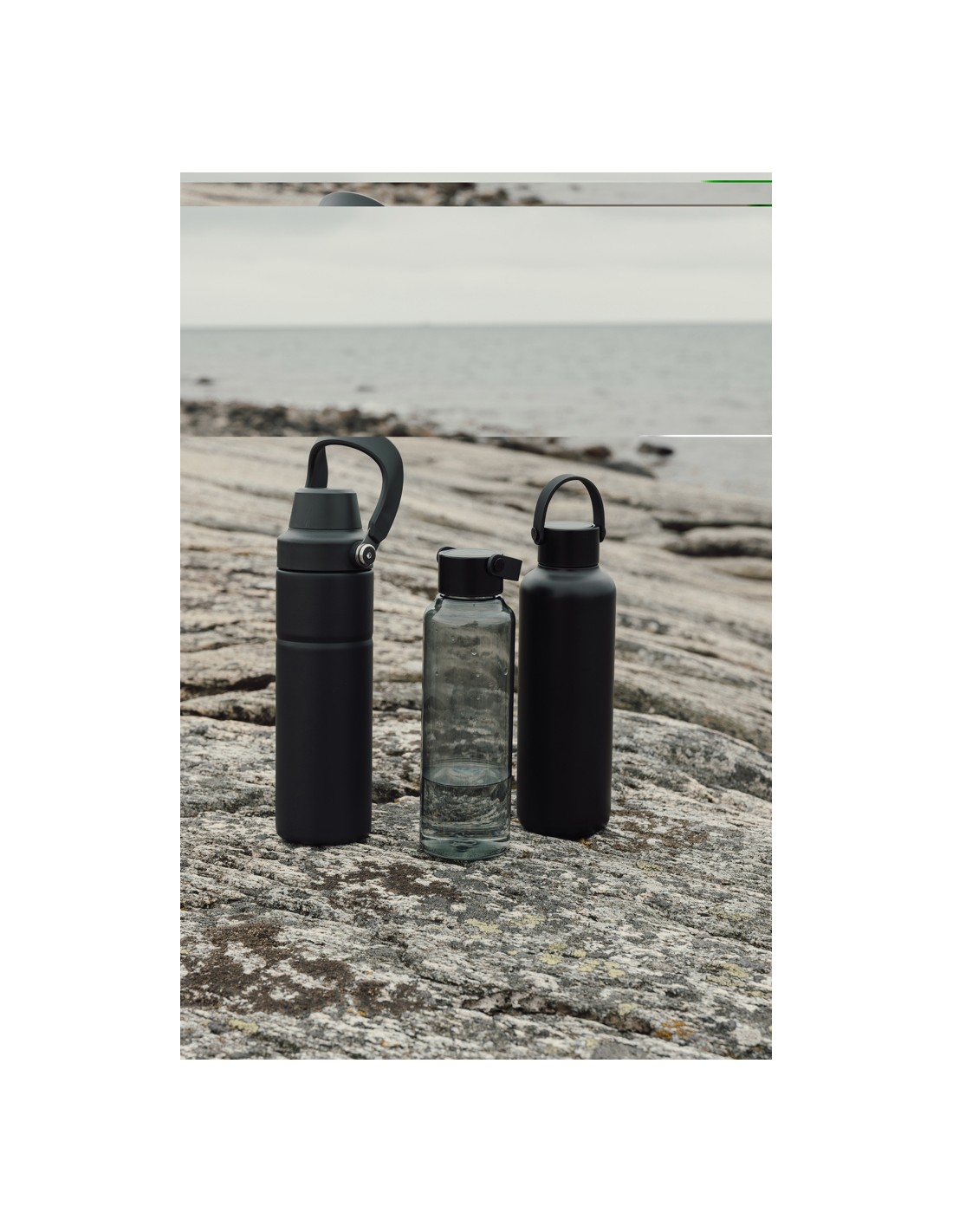 Questa leggera bottiglia riutilizzabile è realizzata in resistente acciaio inossidabile riciclato 18/8. A prova di perdite e perfetta per il trasporto e l'idratazione quotidiana. Consigliata solo per acqua fredda. Realizzata con materiali riciclati certificati RCS (Recycled Claim Standard). La...