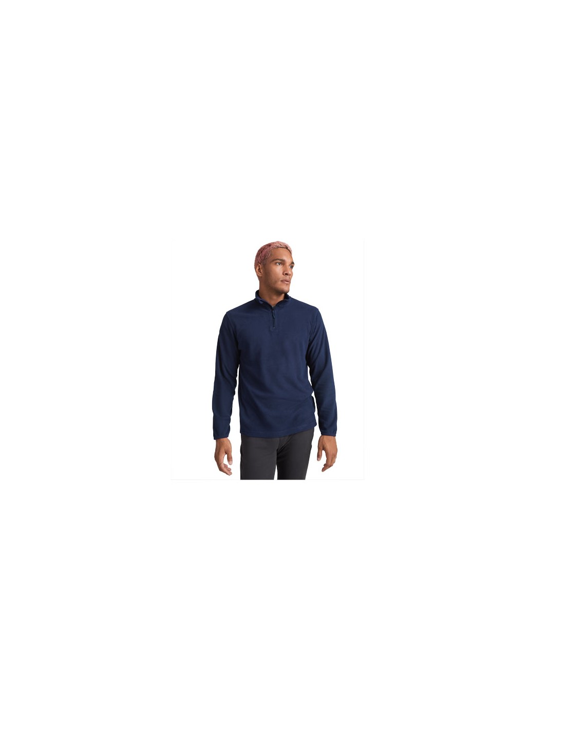Giacca in micropile per uso quotidiano con collo alto, maniche lunghe e coste a contrasto. Tasca con zip a contrasto sulla manica sinistra e zip anteriore a contrasto. Cuciture sui lati e sul petto. Gomitiere nello stesso tessuto.