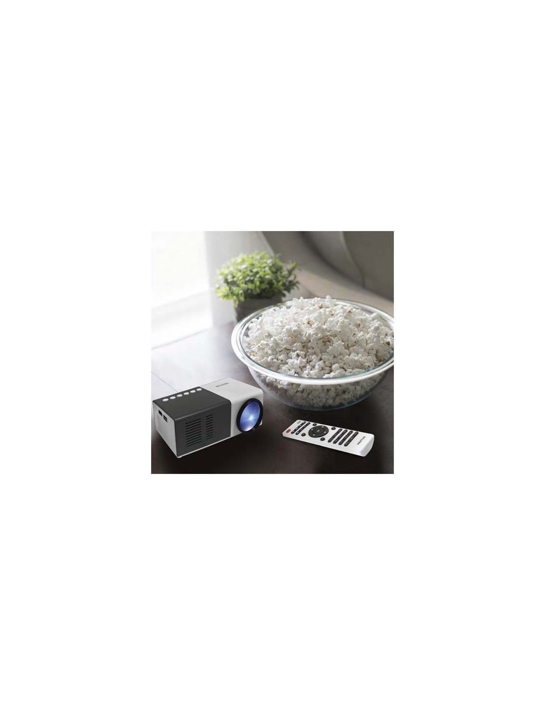 Il mini proiettore Cinema riproduce video con immagini di alta qualità ed è compatibile con 1080p full HD, oltre che con 1080i, 720p, 576i, 480p e 480i via HDMI. Include un telecomando per un comfort maggiore e due altoparlanti stereo. Oltre ai video, può riprodurre anche audio, foto e testo.