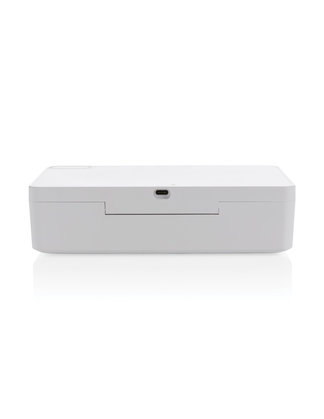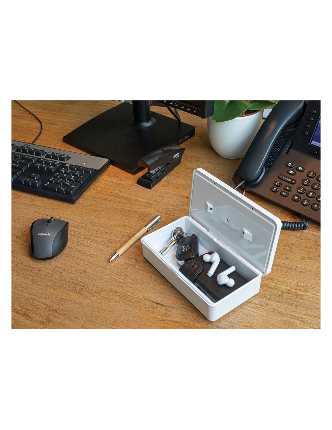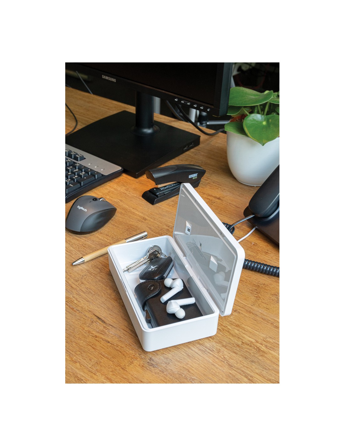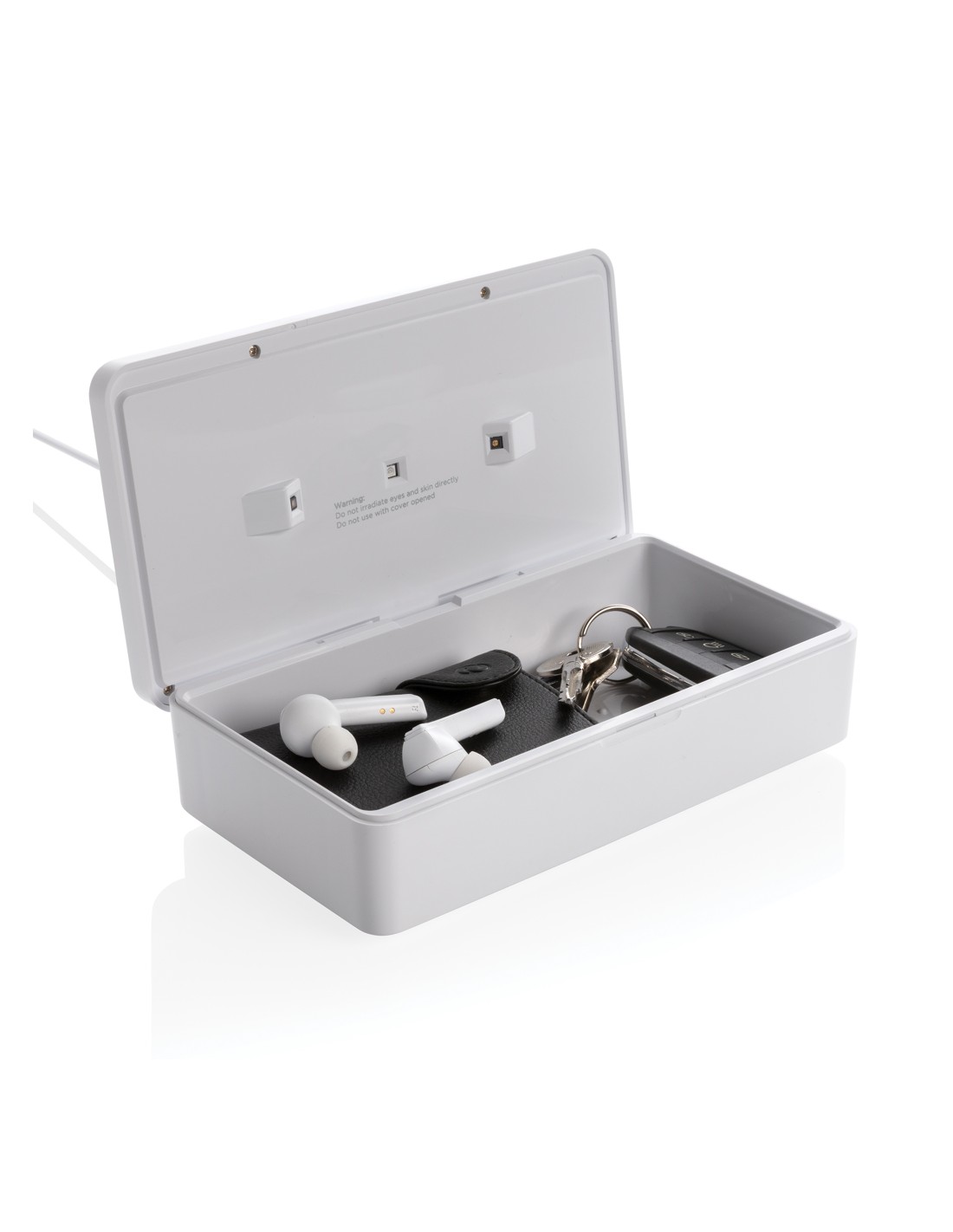Sterilizzatore UV-C multifunzione che uccide fino a 99,9 % dei batteri presenti all'interno del dispositivo. Posiziona semplicemente oggetti come auricolari, gioielli, orologi e maschera facciale all'interno della scatola per sterilizzarli utilizzando la tecnologia UV-C. Puoi scegliere di eseguire una pulizia rapida in 90 secondi o una pulizia completa in 5 minuti. Al suo interno, c'è una lampada LED 2 UV-C che è atossica e prodotta senza mercurio come molte lampade UV sul mercato. Progettata in modo che la lampada a LED UV-C si spenga automaticamente quando la scatola è aperta in modo che l'utente non venga esposto alla luce UV-C. Le luci hanno un ciclo di vita di 10.000 ore. E' fornito di cavo in TPE di tipo C privo di PVC e lungo 100 cm. Input: 5V/1.5A