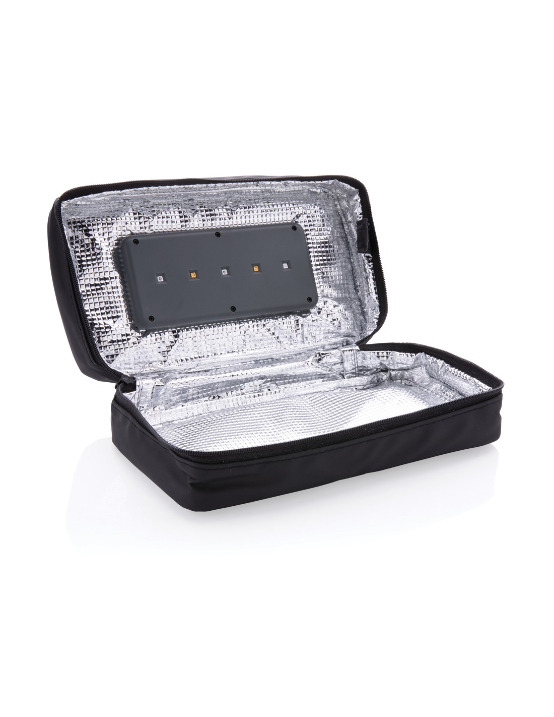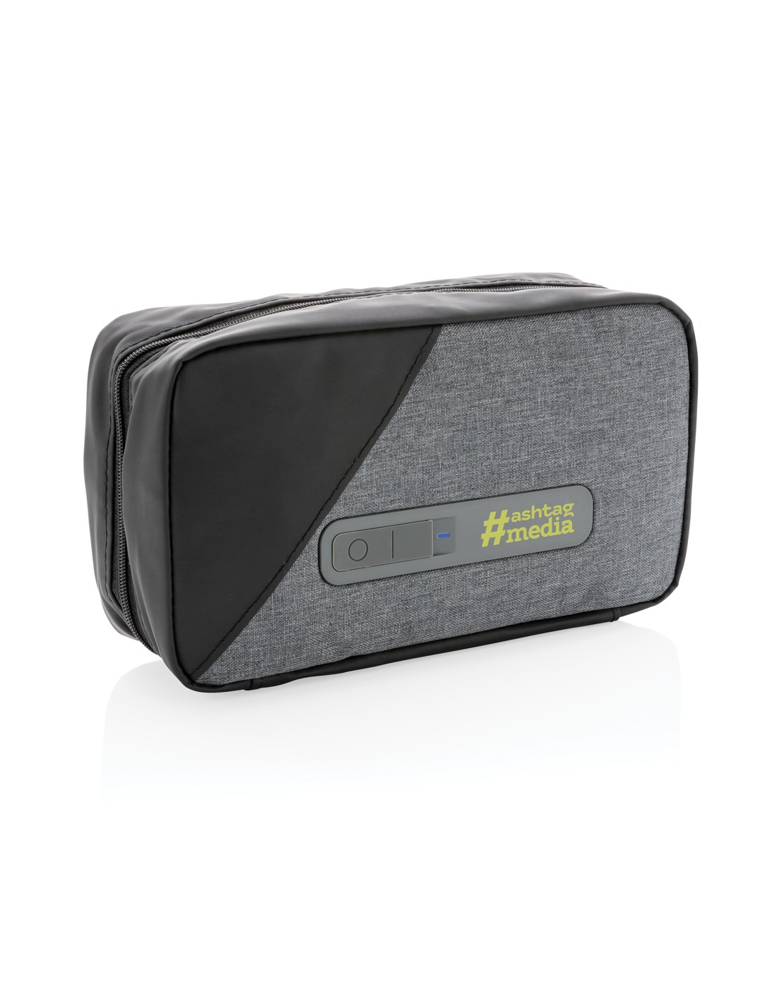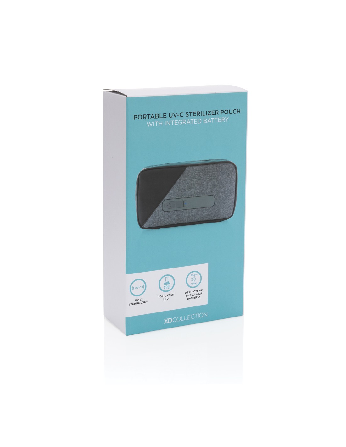 Tieni puliti i tuoi effetti personali ovunque tu vada, uccidendo fino al 99,9% dei batteri sugli oggetti inseriti nella custodia. Perfetto per disinfettare le chiavi e il telefono in viaggio: 5 minuti in modalità veloce o 10 minuti per una pulizia completa. Le tre luci LED UV-C all'interno sono atossiche e prive di mercurio. Il design garantirà inoltre che la luce LED UV-C si spenga automaticamente quando la custodia viene bloccata tramite cerniera e chiusura magnetica evitando cosi' di esporre l'utente alla luce UV-C. Ha una batteria integrata da 400 mAh. Materiale esterno: poliestere 600D e PU. Completo di cavo di ricarica in materiale TPE senza PVC. Lunghezza d'onda UV-C 270nm-280nm.