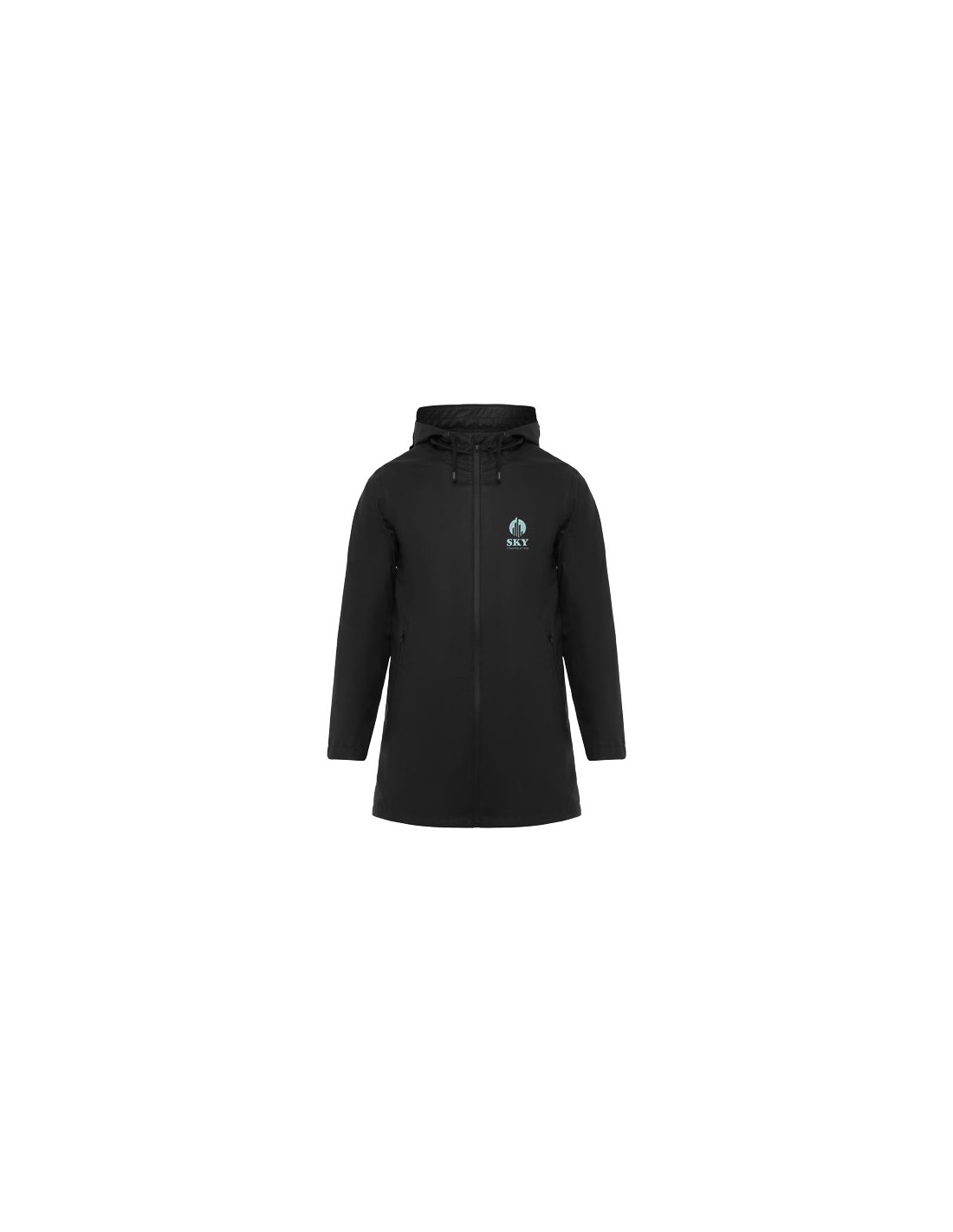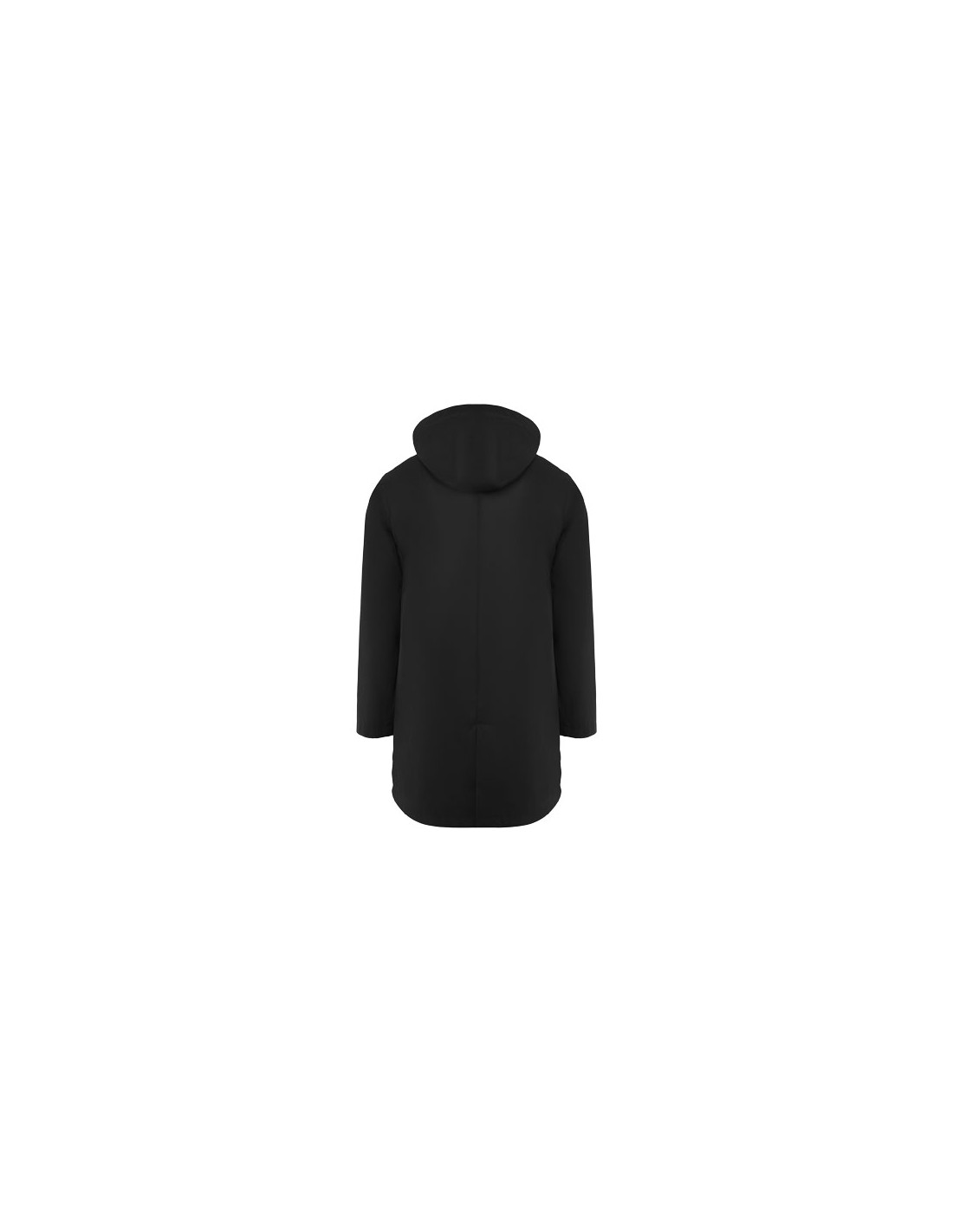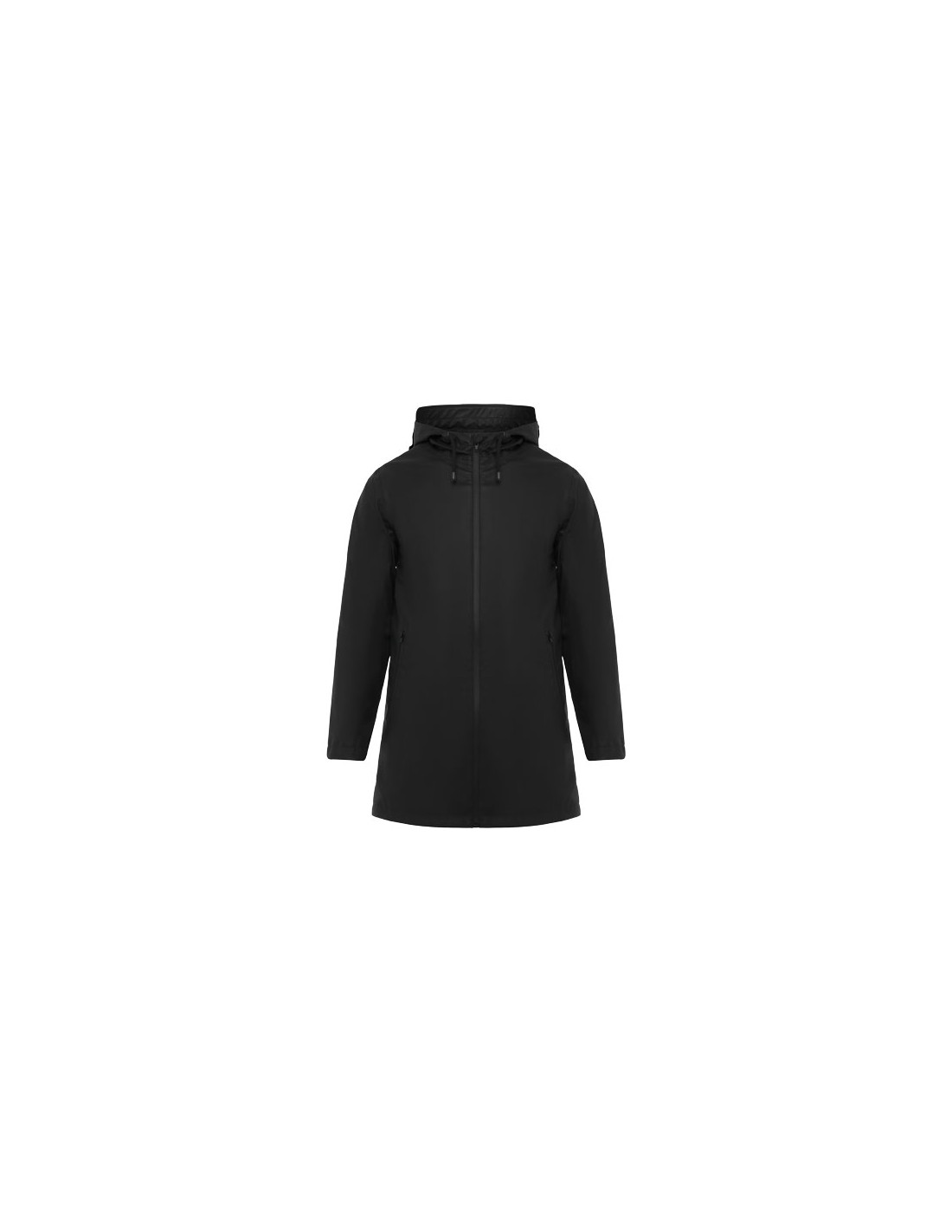 Giacca imbottita con cappuccio fisso. Cerniera anteriore coperta da una pattina. Proteggi mento. Due tasche laterali con zip. Polsini elasticizzati.