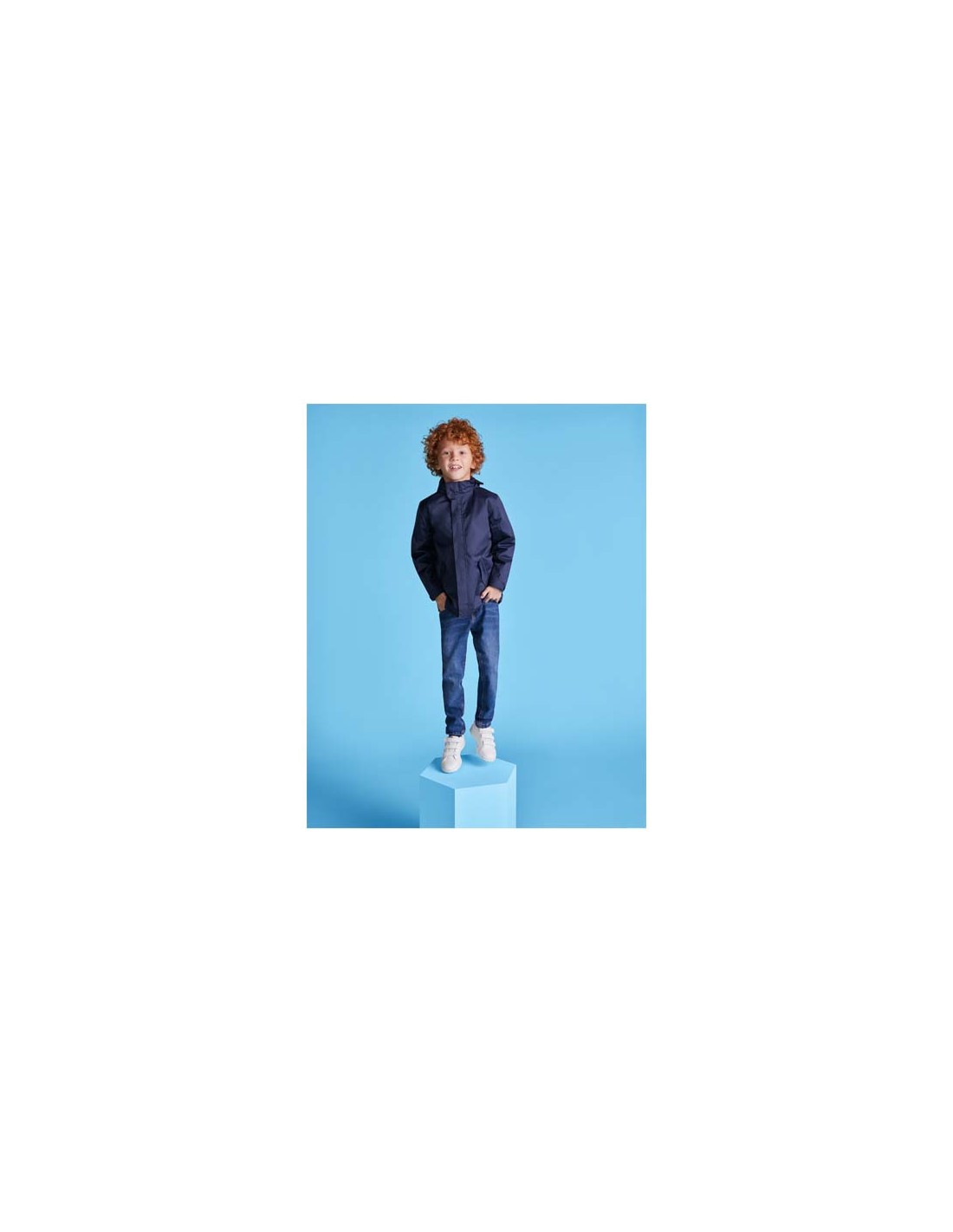 Giacca parka impermeabile e imbottita da bambino. Collo alto con cappuccio ripiegabile e chiusura a strappo. Zip centrale abbinata con pattina. Tasche laterali con zip e pattina fissa. Tasca interna con chiusura a strappo. Polsini regolabili con passante a strappo. Accesso interno per rinforzi sul retro e sul petto a sinistra.