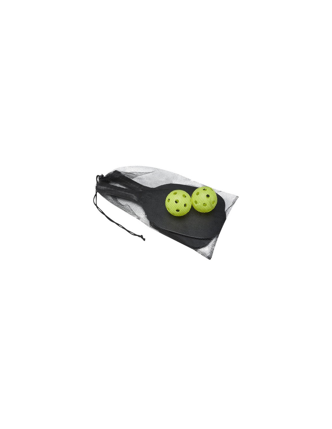 Con questo set di racchette in legno di pioppo puoi allenarti in modo divertente sulla spiaggia, al parco oppure in giardino. Le racchette hanno dimensioni di 40 x 20 x 0,7 cm e sono di colore nero. Presentano un'ampia superficie per la stampa di un logo. I manici sono fasciati con nastro PU che offre la massima aderenza durante le partite. Il set include 2 palline in materiale PP e viene fornito in una custodia in rete di poliestere da 45 x 26 cm. Attenzione! Non adatto a bambini di età inferiore ai tre anni. Parti piccole. Pericolo di soffocamento.