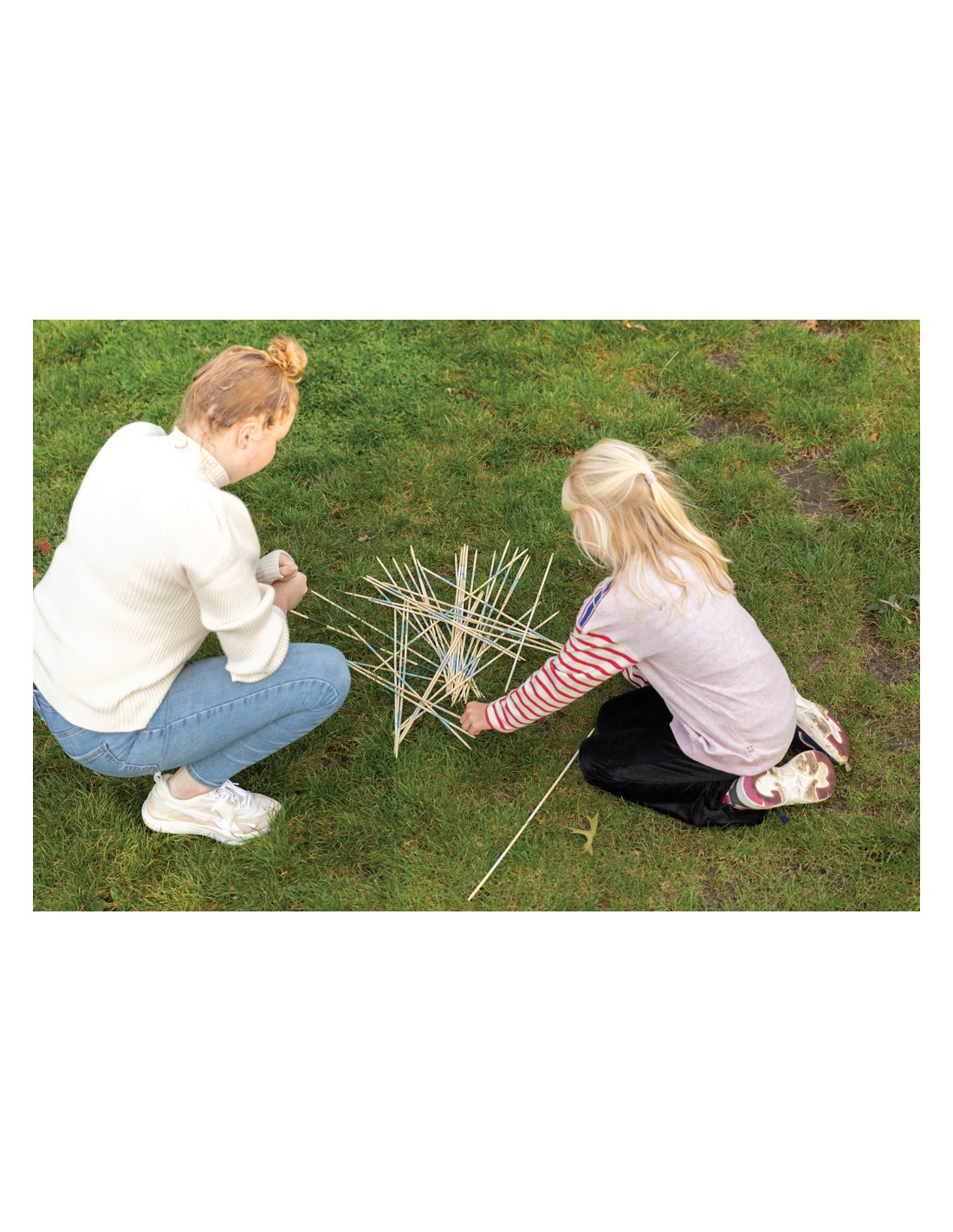 Il famoso gioco Mikado. Ore di divertimento con tutta la famiglia o gli amici! Lascia semplicemente cadere i bastoncini per creare una pila e sei pronto per giocare. Prova a rimuovere i bastoncini dalla pila senza spostarne altri. Se ci riesci, ottieni il punto assegnato al colore del bastoncino rimosso. Il set include 41 bastoncini di bambù in 4 diversi colori. Include custodia in cotone e libretto d'istruzioni.