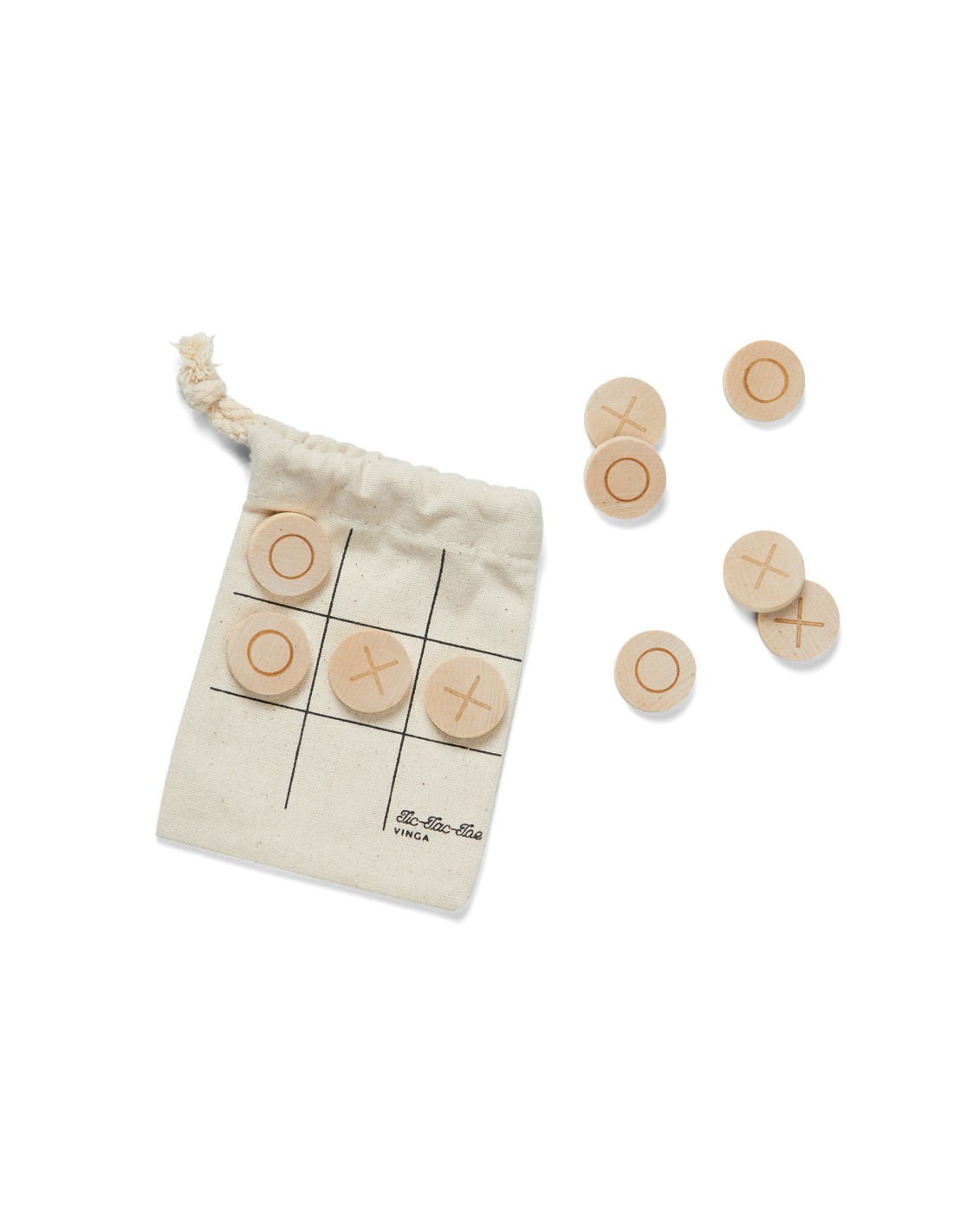 Il gioco del Tris (Tic Tac Toe) è semplice e divertente, adatto a persone di tutte le età. Piccolo e maneggevole, è facile da portare sempre con sé. Lo scopo del gioco è quello di essere il primo giocatore a ottenere tre caselle di fila, in orizzontale, in verticale o in diagonale. 10 pezzi di segnalini di gioco, 5 pezzi con la "X" e 5 pezzi con la "O". Sono contenuti in una busta di tela con un piano di gioco stampato. I segnalini sono realizzati con legno di pino di alta qualità certificato FSC®, che garantisce l'utilizzo di legno proveniente da foreste gestite in modo responsabile. Diametro segnalini: 2,5 cm.
