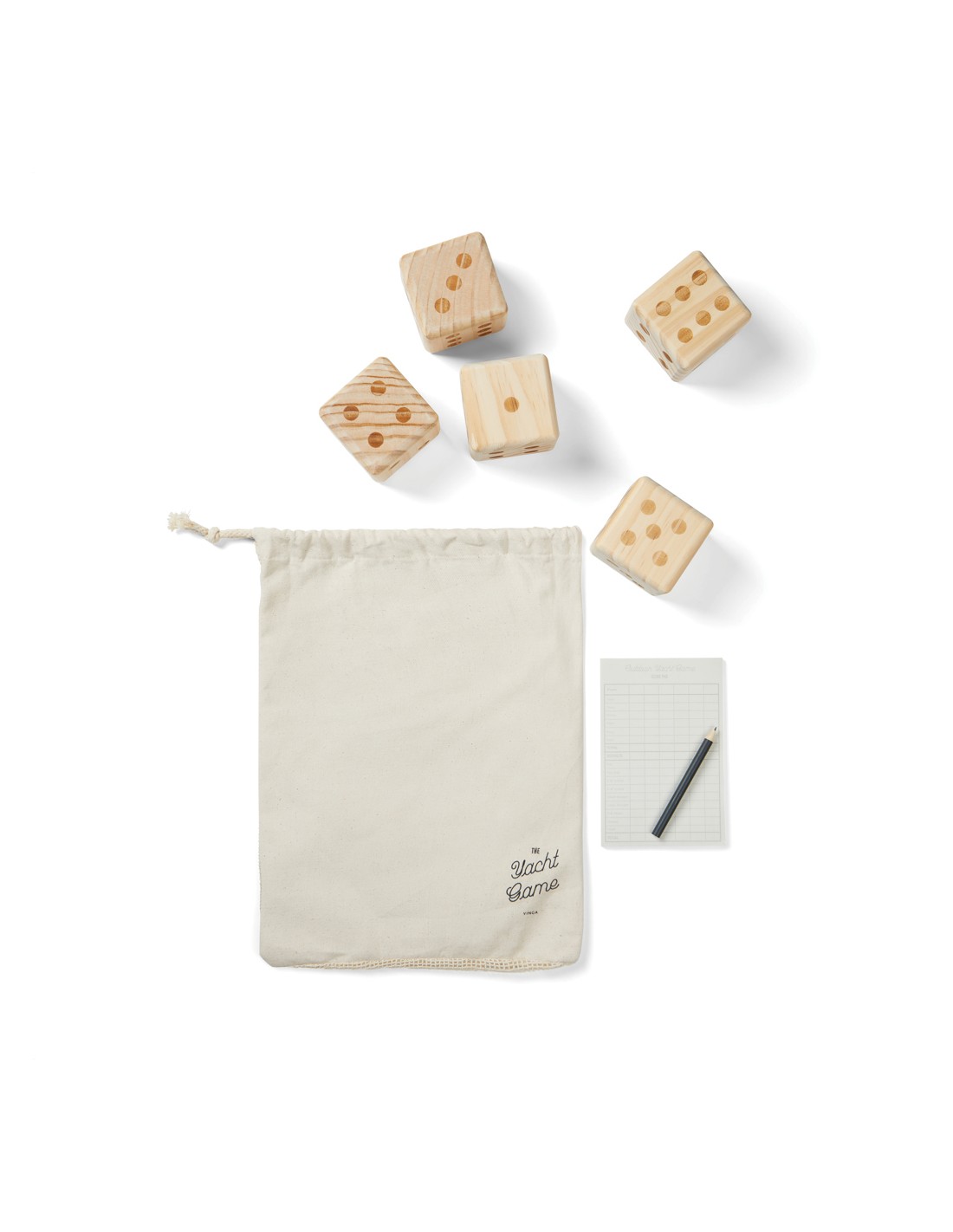 Il gioco dello yacht è il classico gioco di dadi perfetto per le belle giornate all'aperto. Lo scopo del gioco è ottenere il punteggio più alto possibile lanciando e combinando i dadi in modi diversi. Il gioco è facile da imparare e può essere giocato da tutte le età. Sono inclusi 5 dadi di 7x7x7 cm, un blocco per appunti e una matita. Confezionato in un astuccio di cotone con una rete nella parte posteriore. Manuale incluso. Tutte le parti in legno sono realizzate con legno di pino di alta qualità certificato FSC®, per garantire che il legno provenga da foreste gestite in modo responsabile.